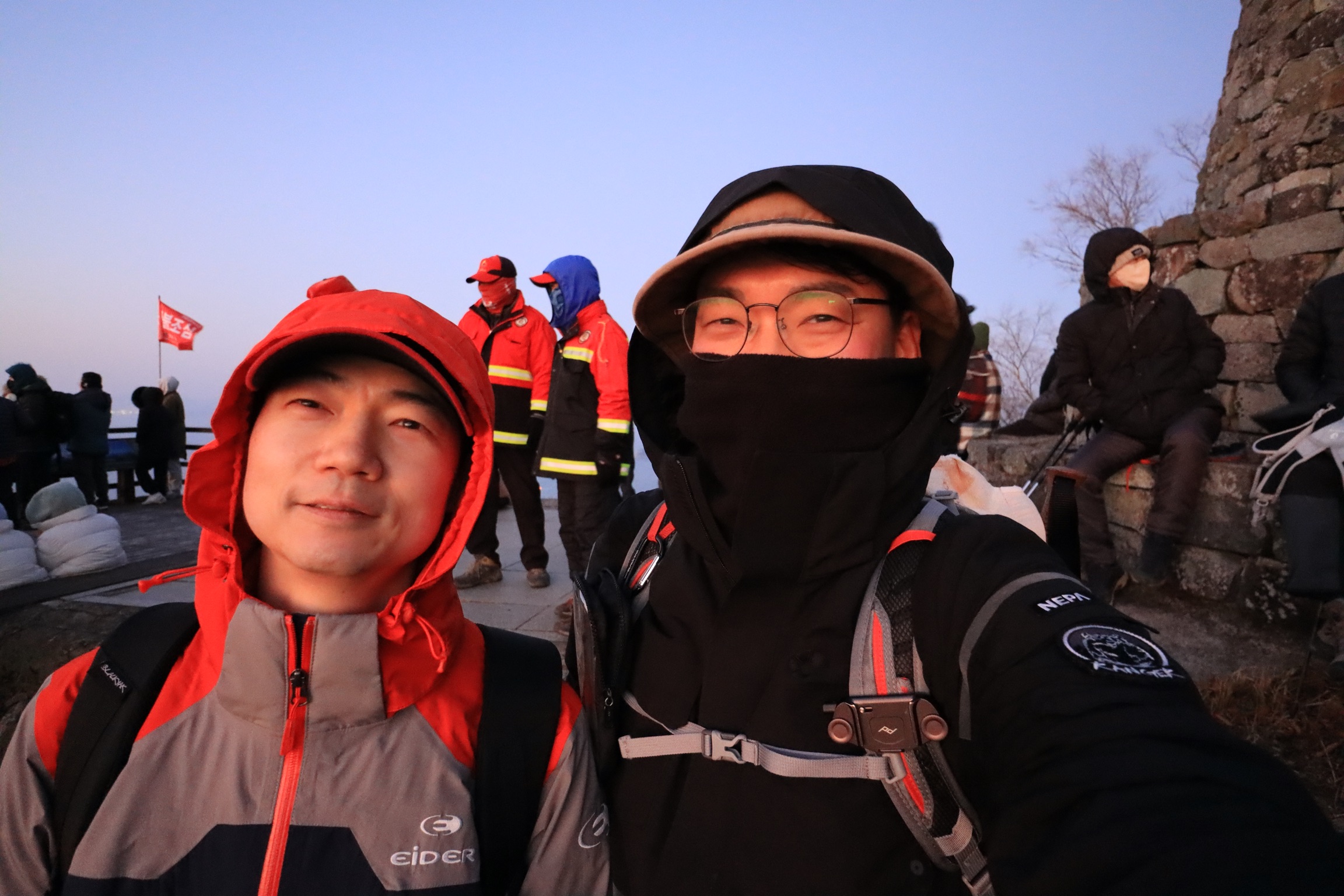 아마도 하산 중에 어느 여성 한 분이 바닥에 주저앉아 있더니만 넘어진 건지 부상을 입었나 보다. 정초부터 사고 목격. 안타깝다. 큰 부상이 아니길 기원해 본다.