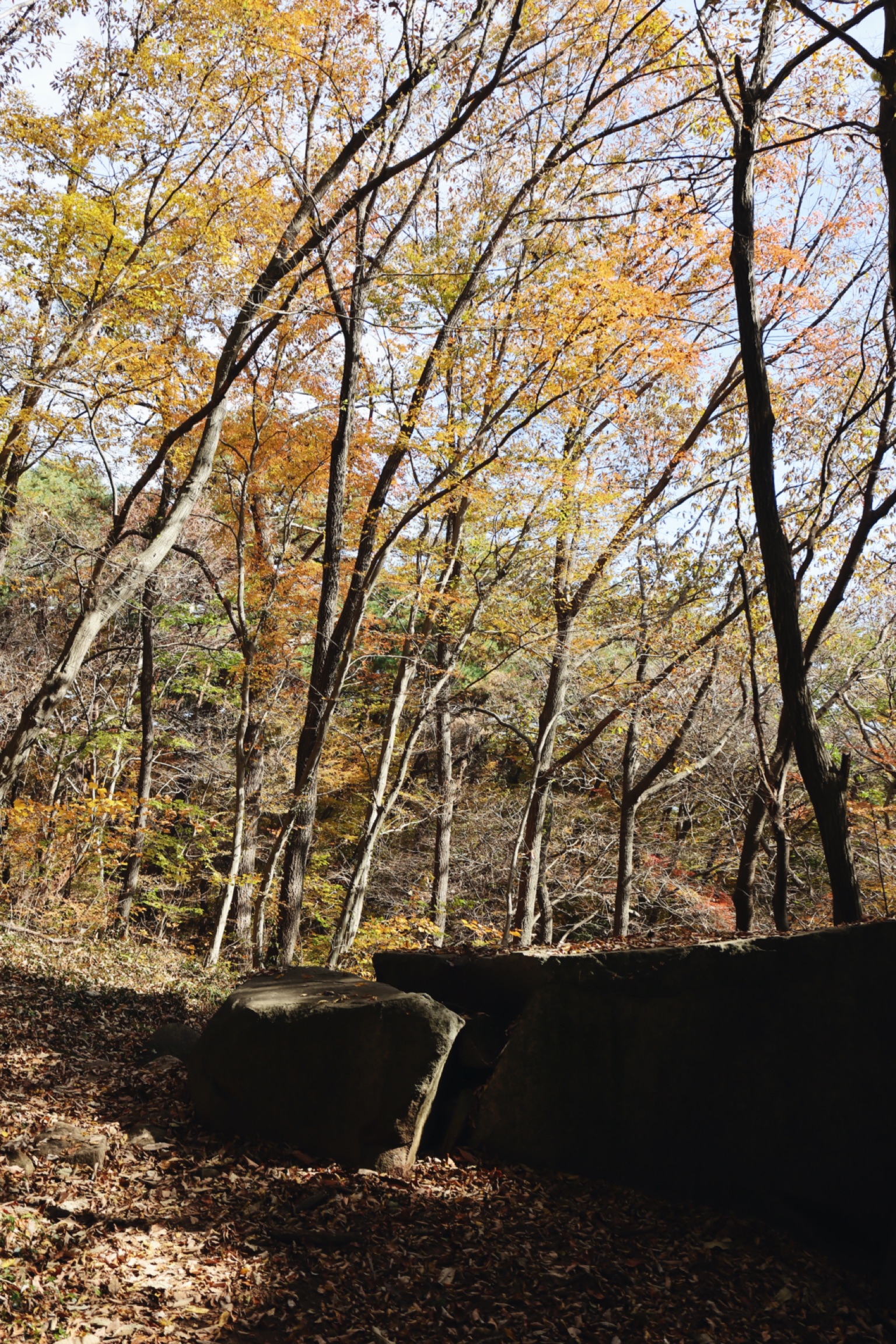 이 쪽 길은 단풍이 멋지긴 하지만 마른 낙엽이 많아 미끄러짐 주의가 필요한 코스다.