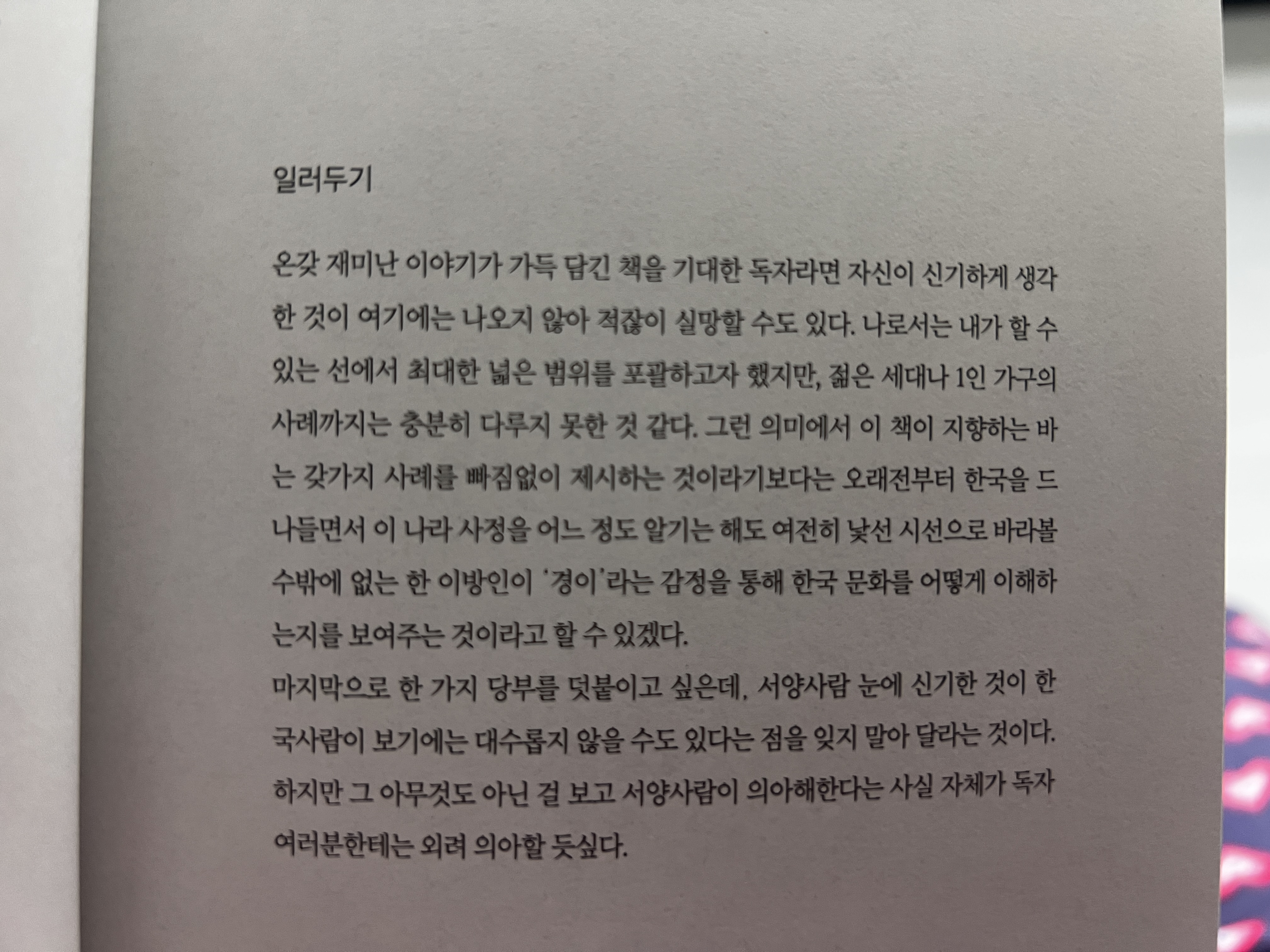 작가 본인이 보았을 때 한국인이라면 너무나도 평범한 것들이라 재미가 없을 수도 있다지만 나는 100% 한국인인데 읽다 보니 재미가 있다.