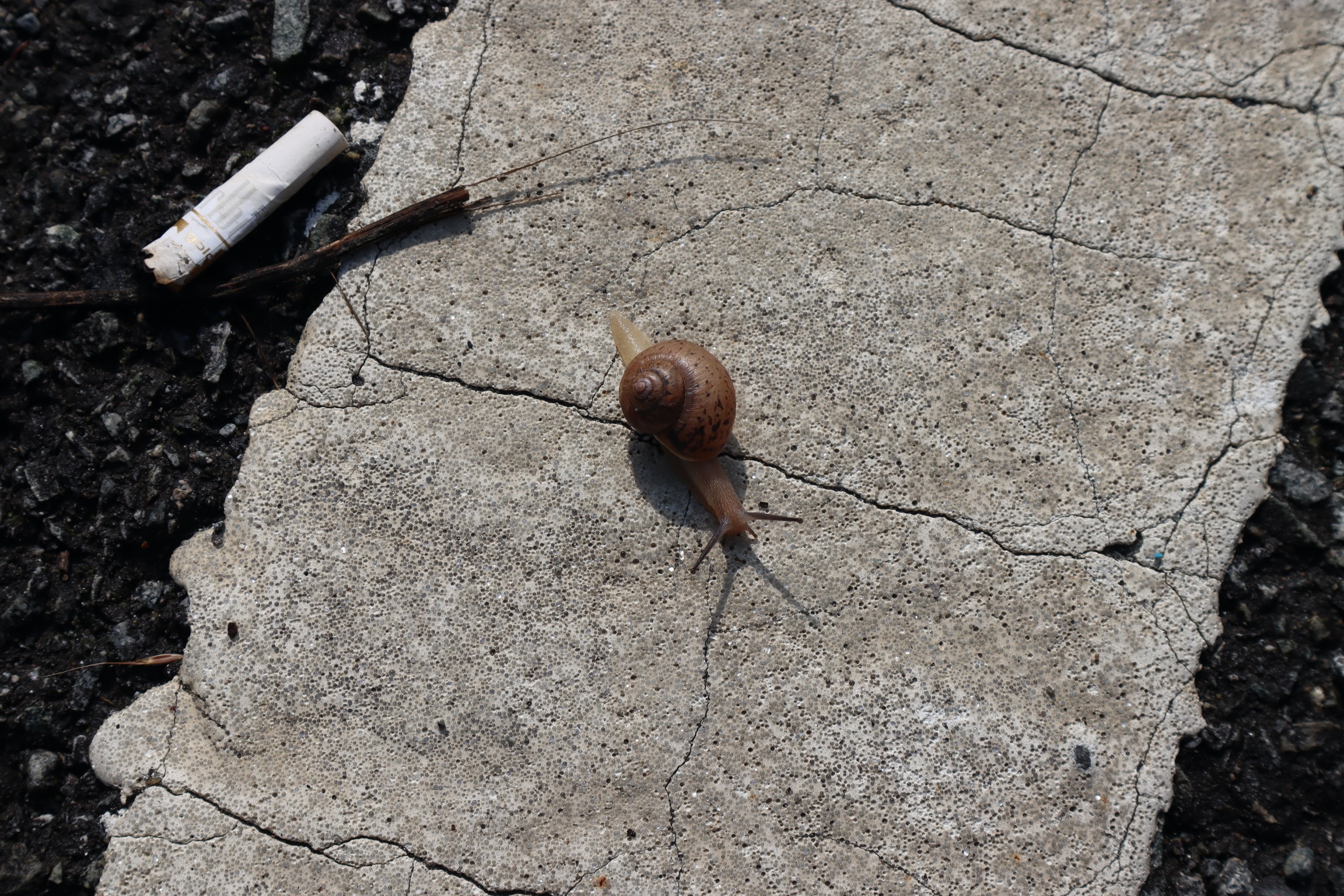 비 온 뒤라 도로에 달팽이들이 곳곳에 보인다.