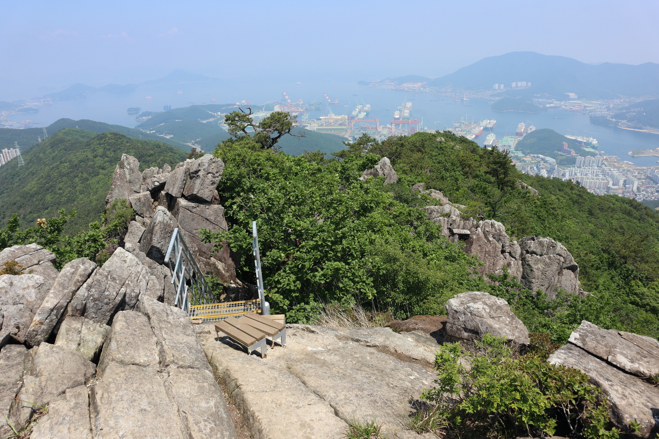 산 위에서의 풍경이야 다 비슷하겠지만 섬들이 줄줄이 보이는 거제의 다른 산들에 비해 계룡산은 별로 볼거리는 없으며 돌길이 많아서 발바닥이 고생인 나름 힘든 산에 속하는 것 같다.