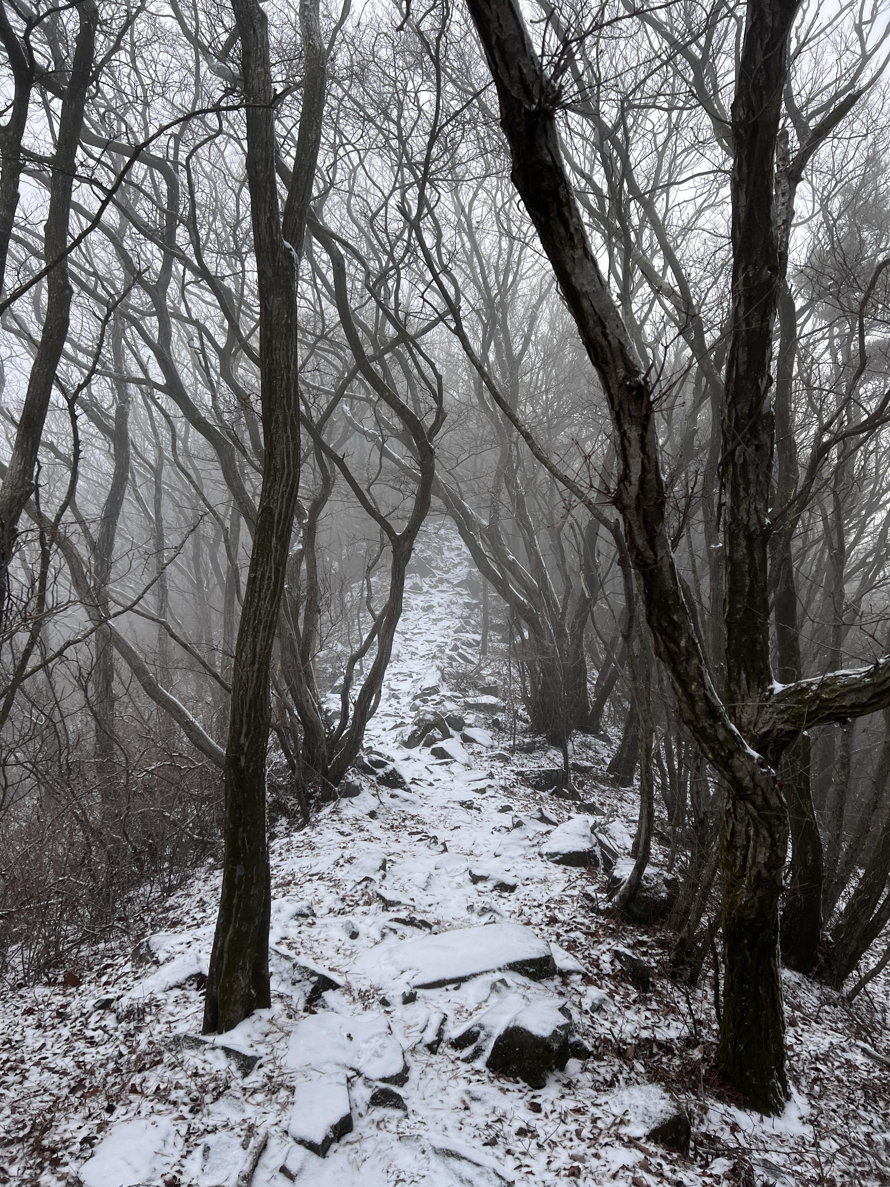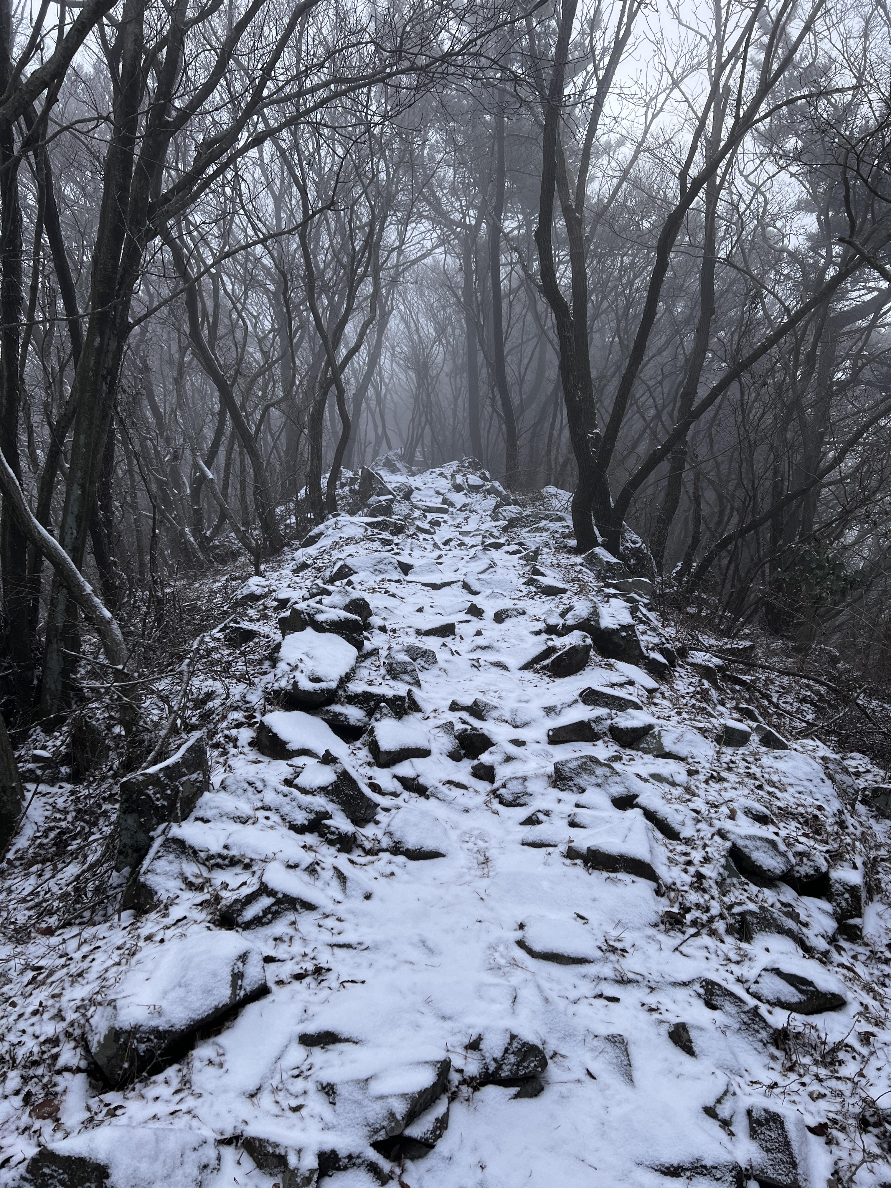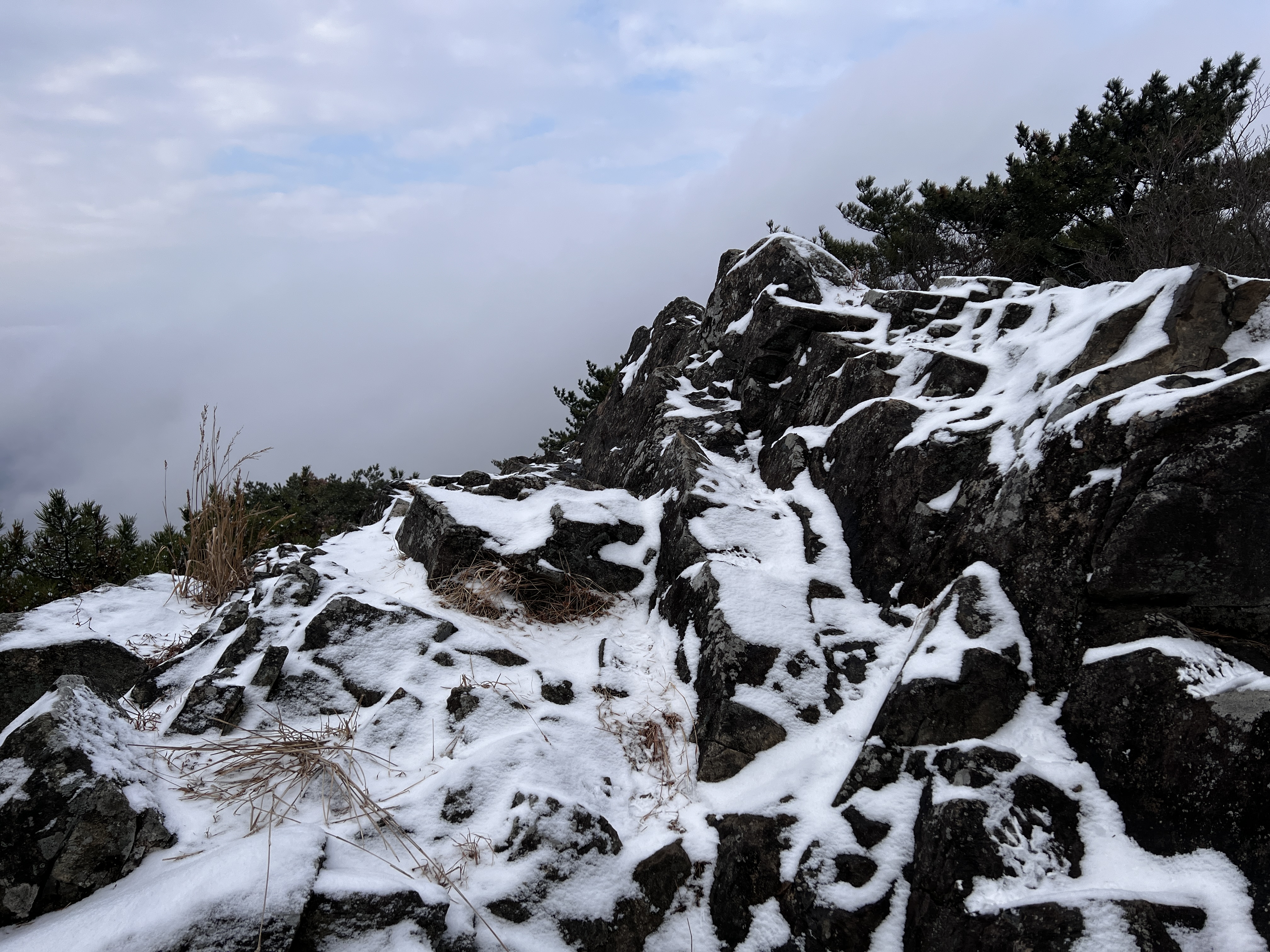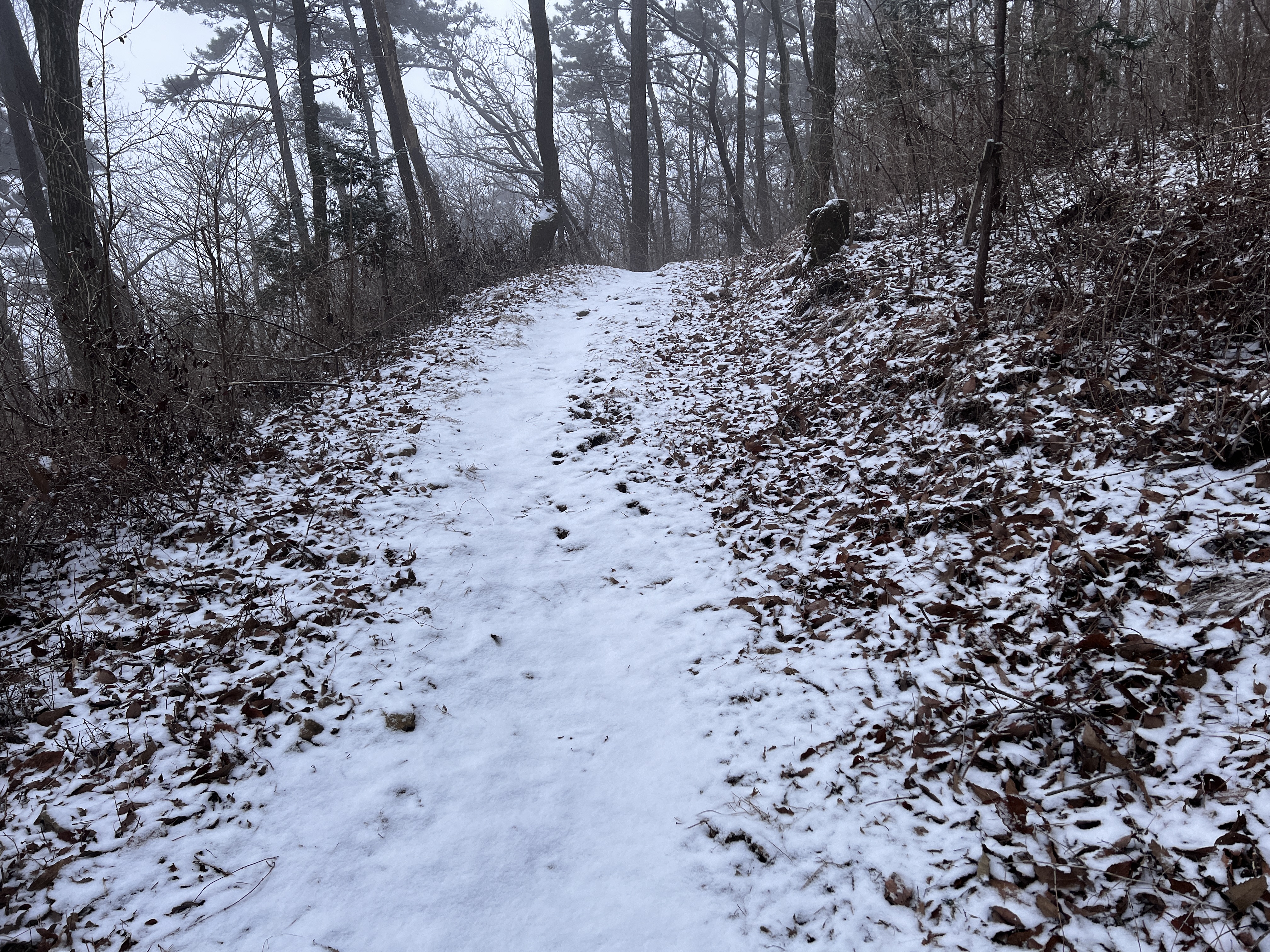조금 내려오니 오전 시간이 지나서인지 날은 개이고 눈은 다 놓아 버리는구먼. 아쉽다!