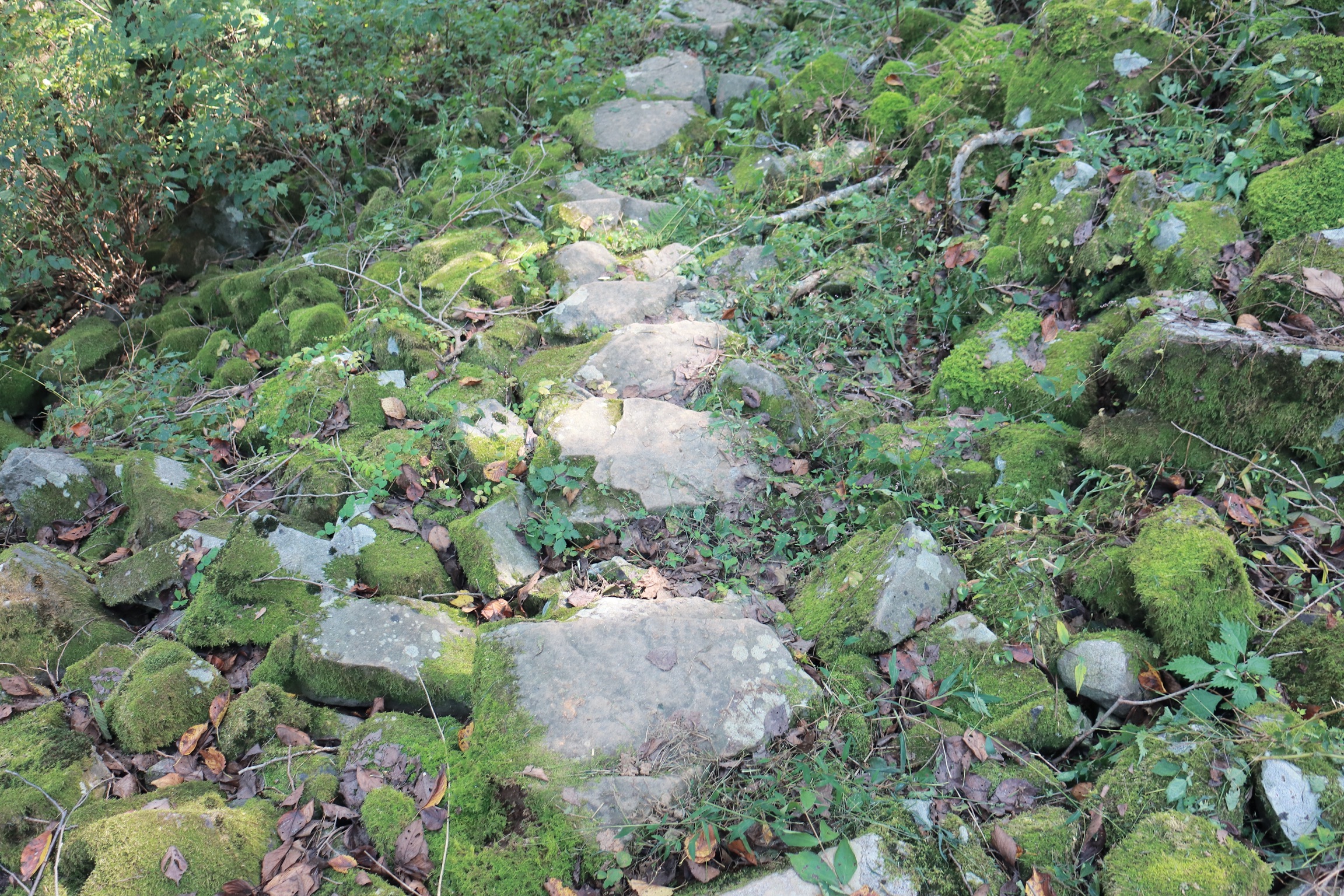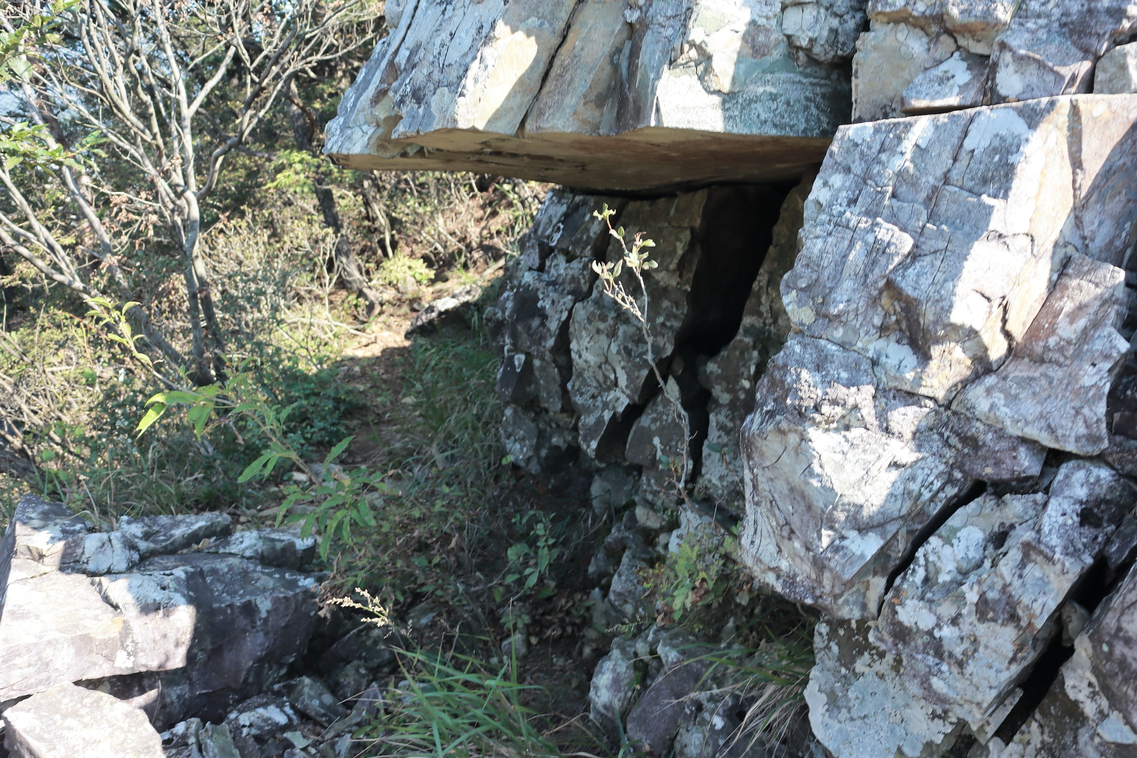 0.2km 남았다. 성벽 위로 돌탑이 나타난다.