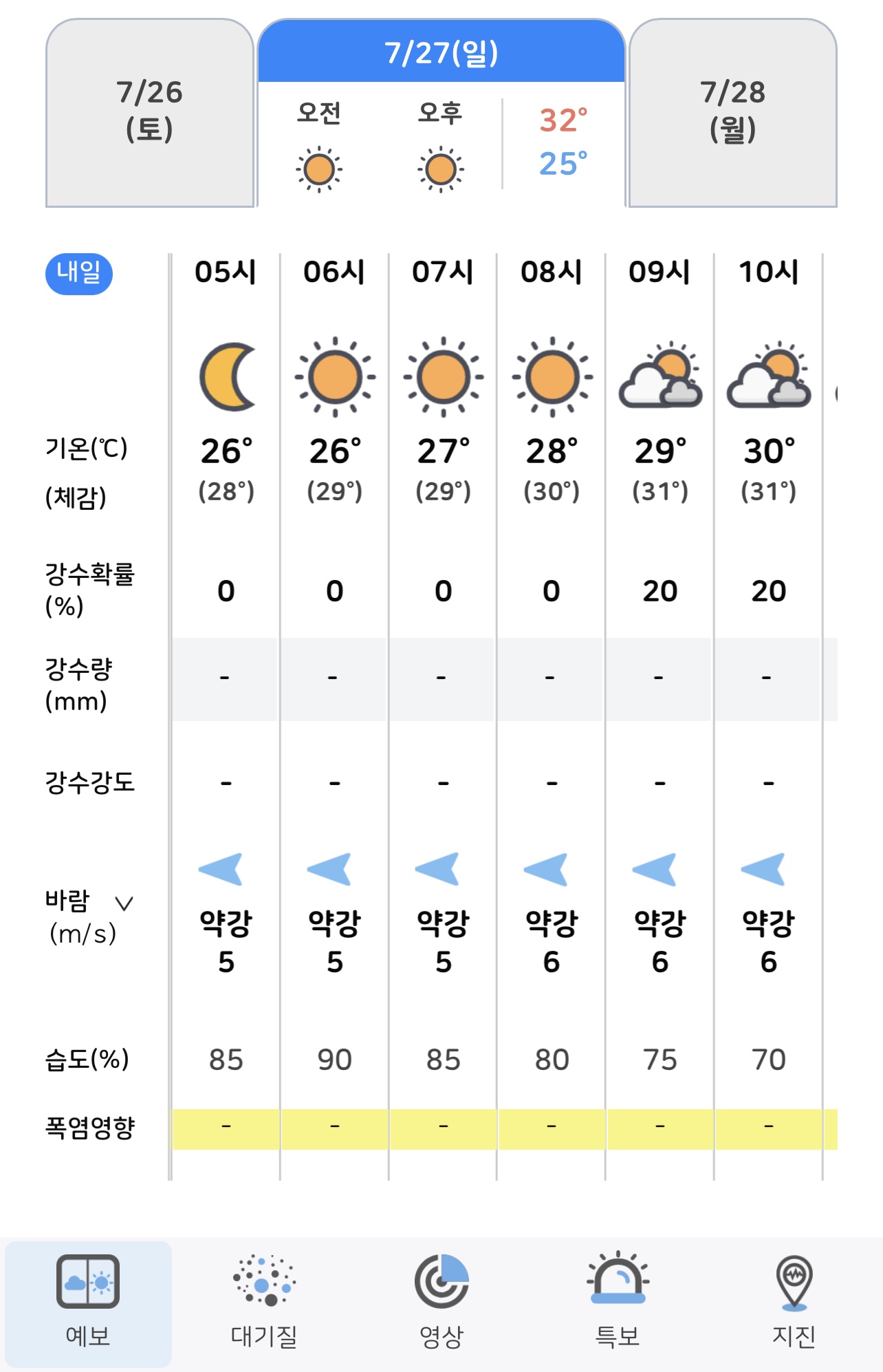 07:00시도 안 되었는데 벌써 바깥온도가 높다.