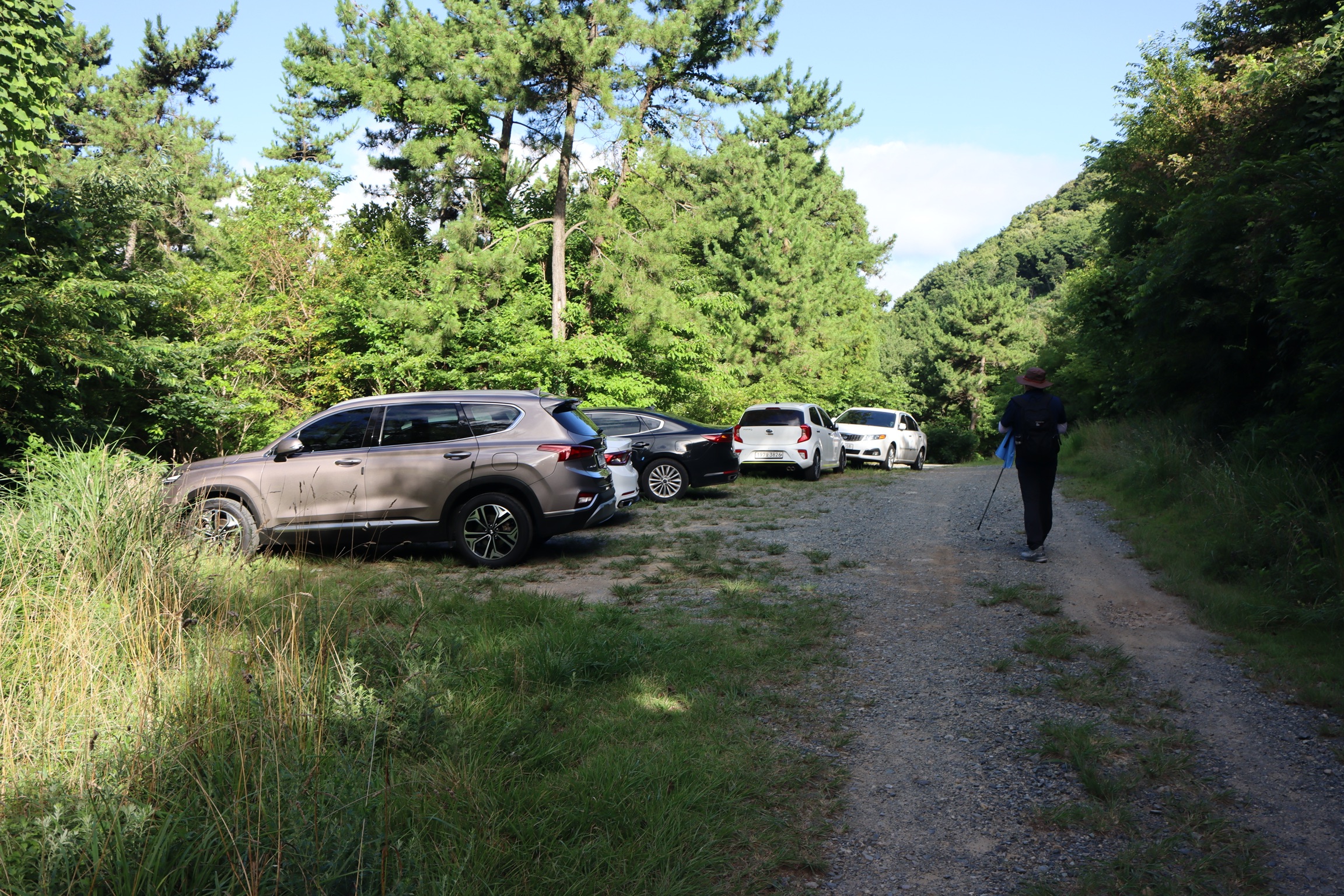 오늘 함께할 손동생을 태우고 꽤 경사도가 있는 산길을 거슬러 최단 코스에 도착. 벌써 올라간 사람들이 꽤 있다.