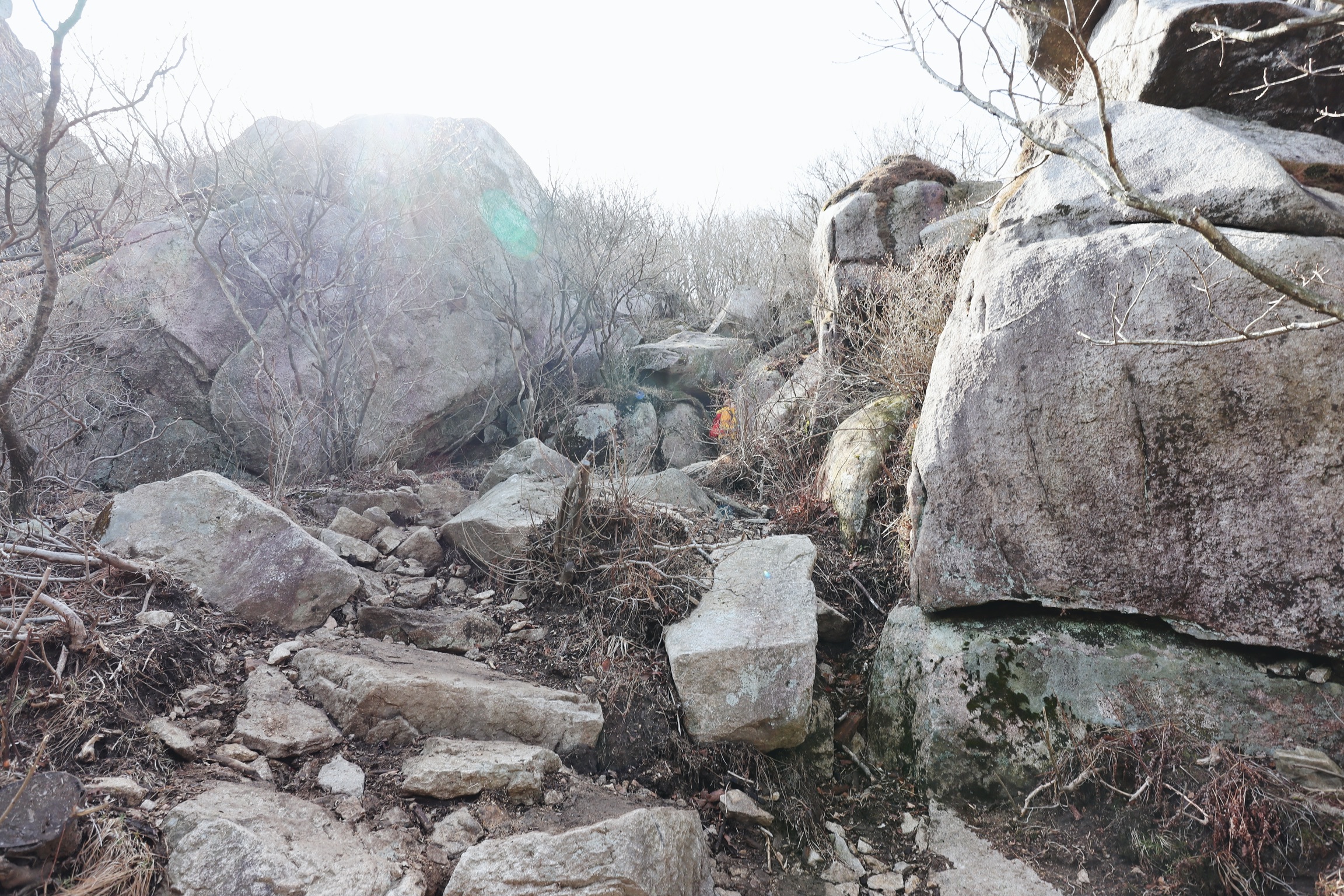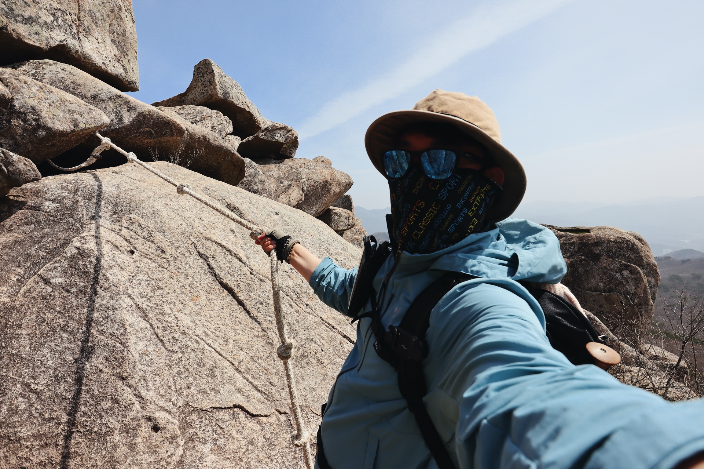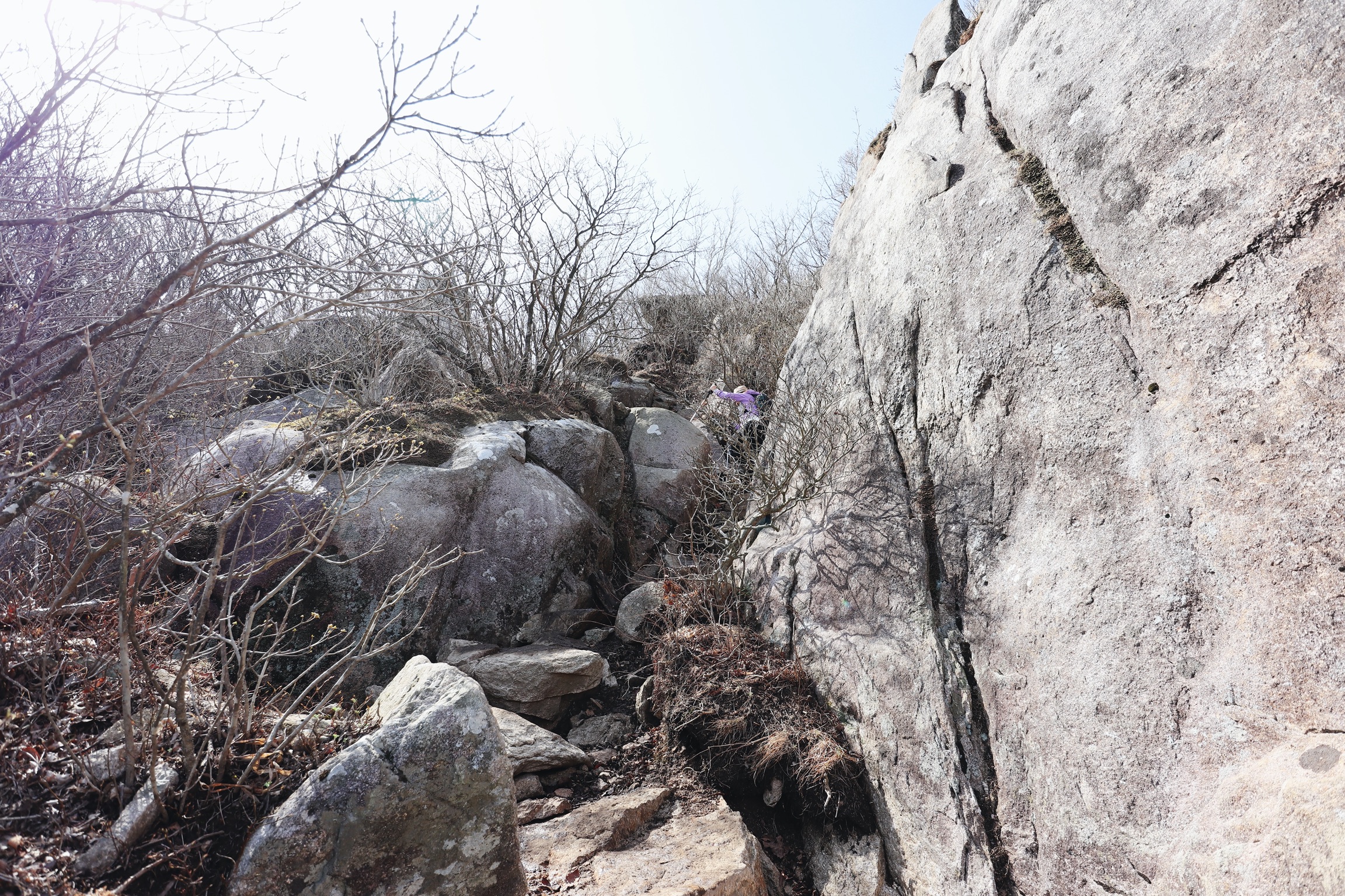 줄잡고 올라야 하는 좁디좁은 바위틈도 있다.