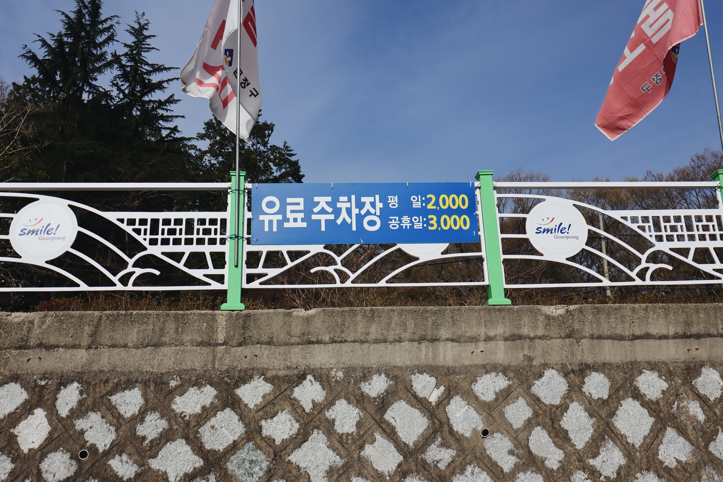 유료주차장으로 평일엔 2천 원, 주말엔 3천 원이다.
