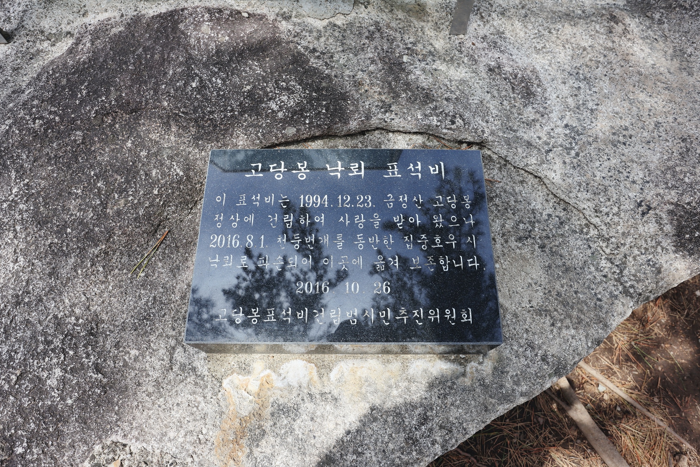 탐방센터 앞에 있는 낙뢰 맞은 옛날 정상석.