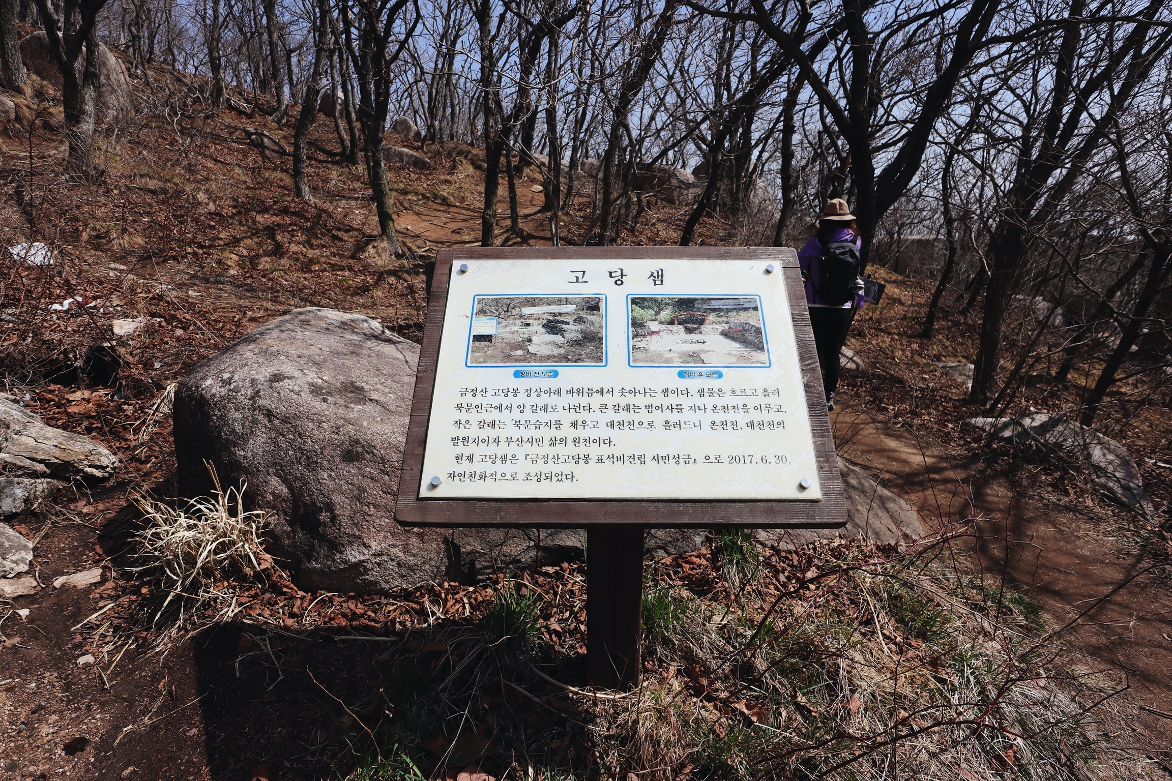 내려오는 길에 만난 고당샘. 마시지는 못할 듯.