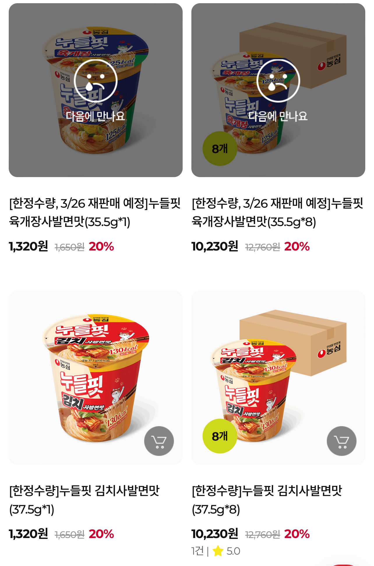 좀 더 사둘까 싶어서 다시 농심몰을 가보니