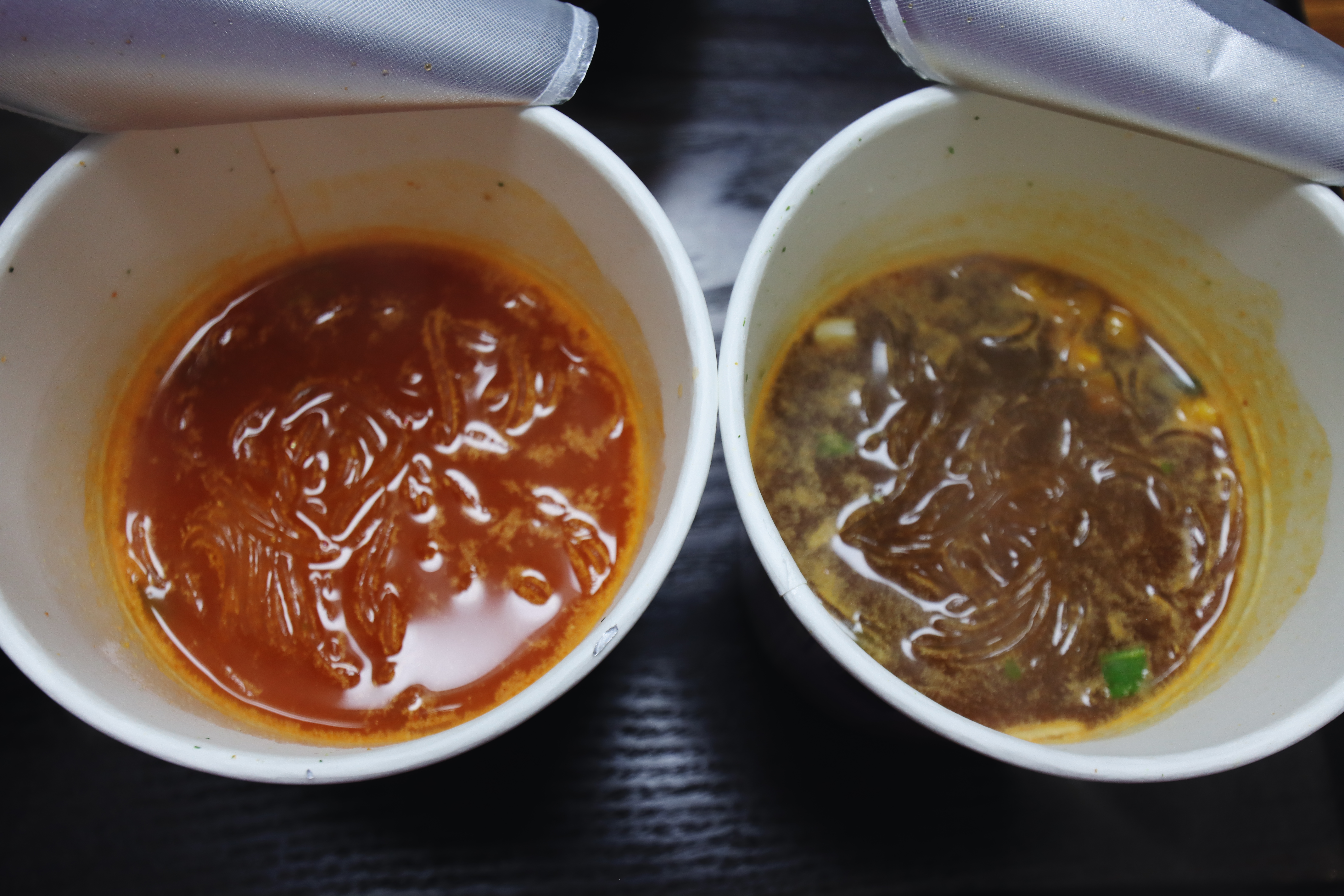 국물색은 육개장맛은 라면과 비슷하게 조금 어두운 색이고