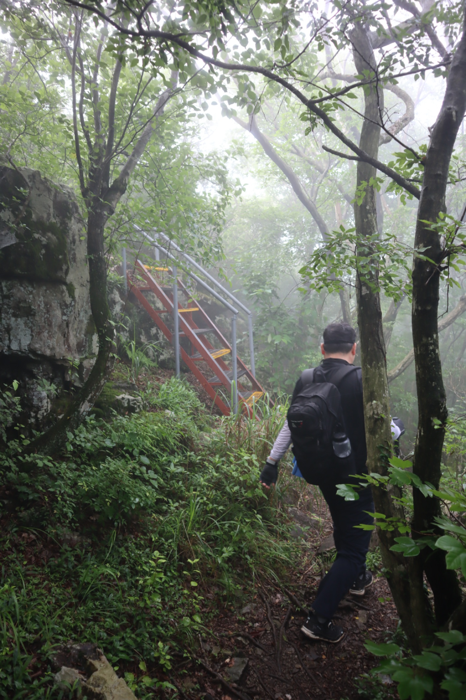 신비로운 느낌이 드는 안개가 자욱한 등산로.