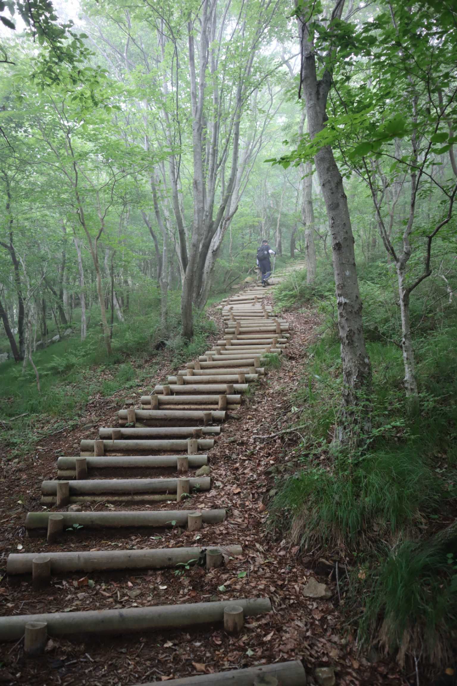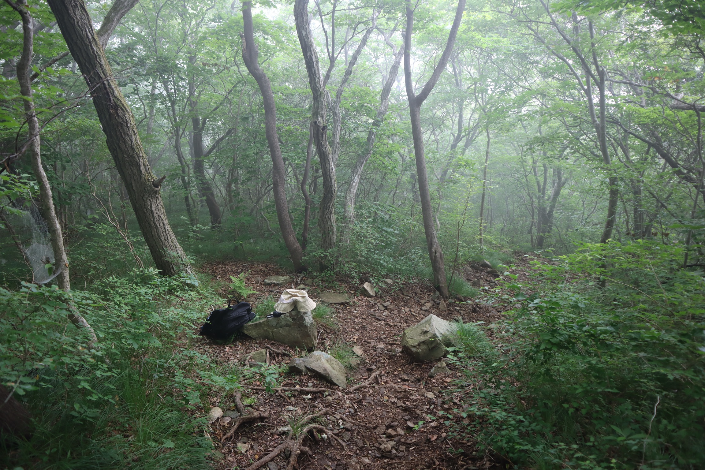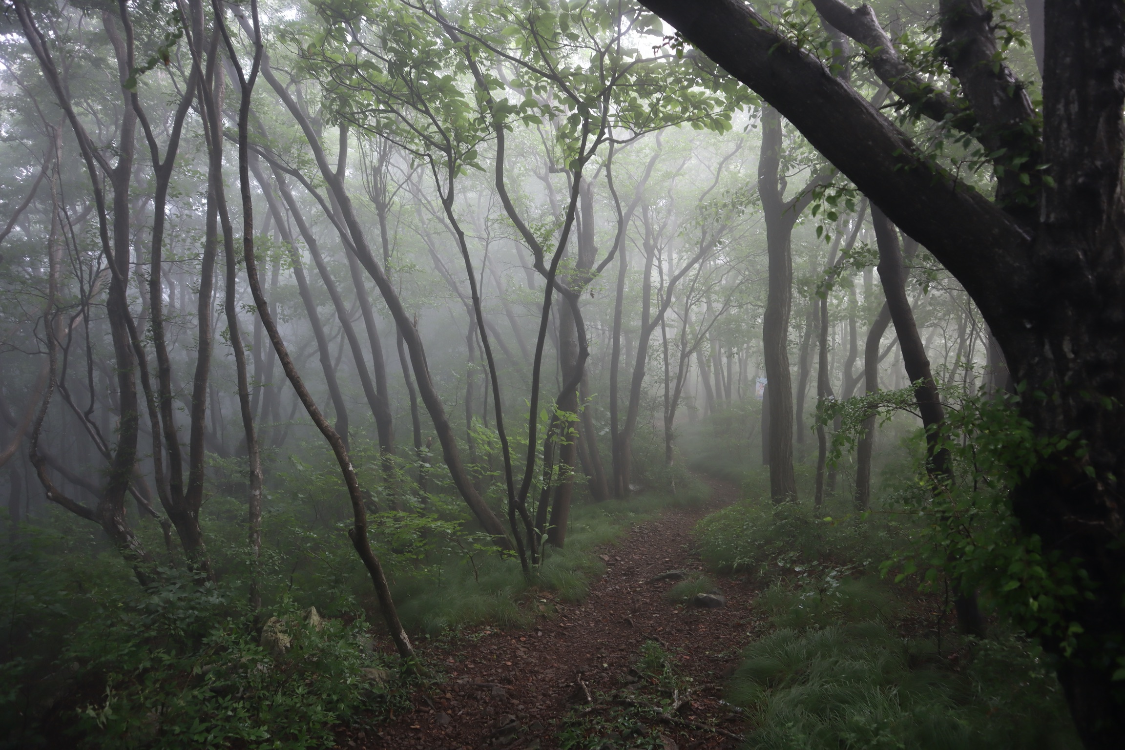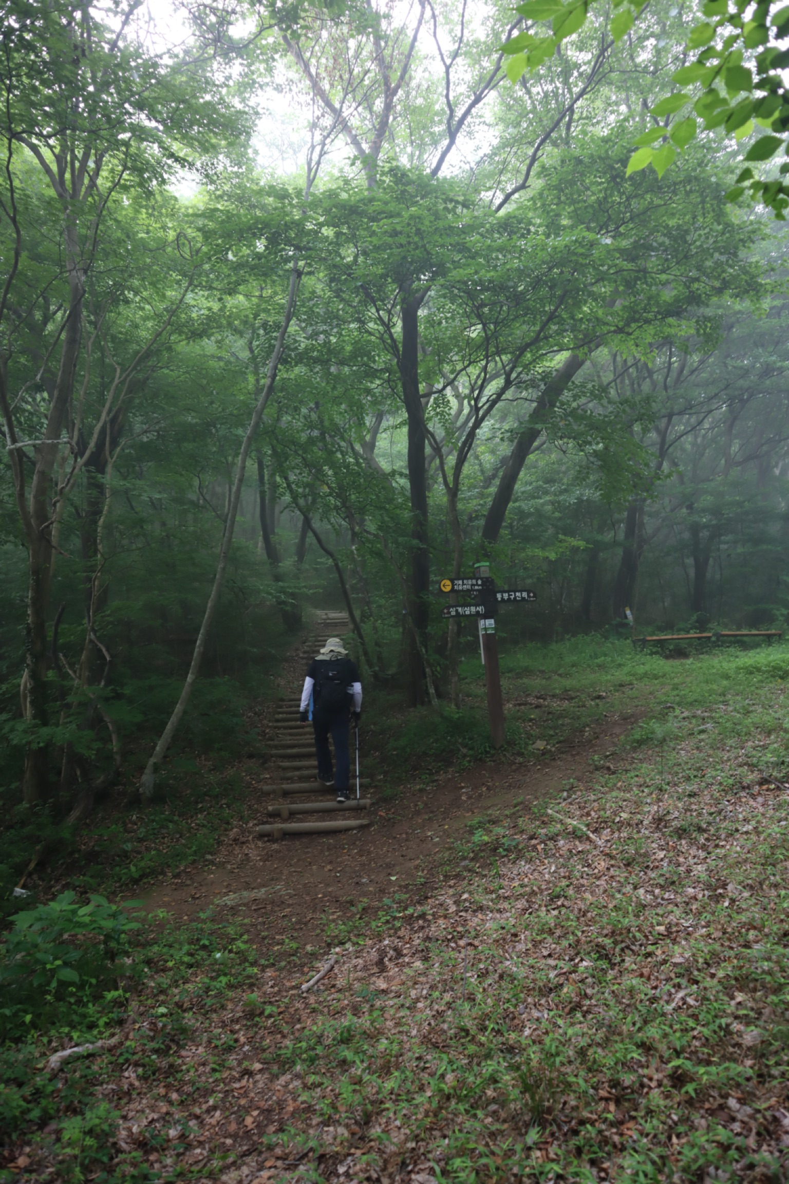신비로운 느낌이 드는 안개가 자욱한 등산로.