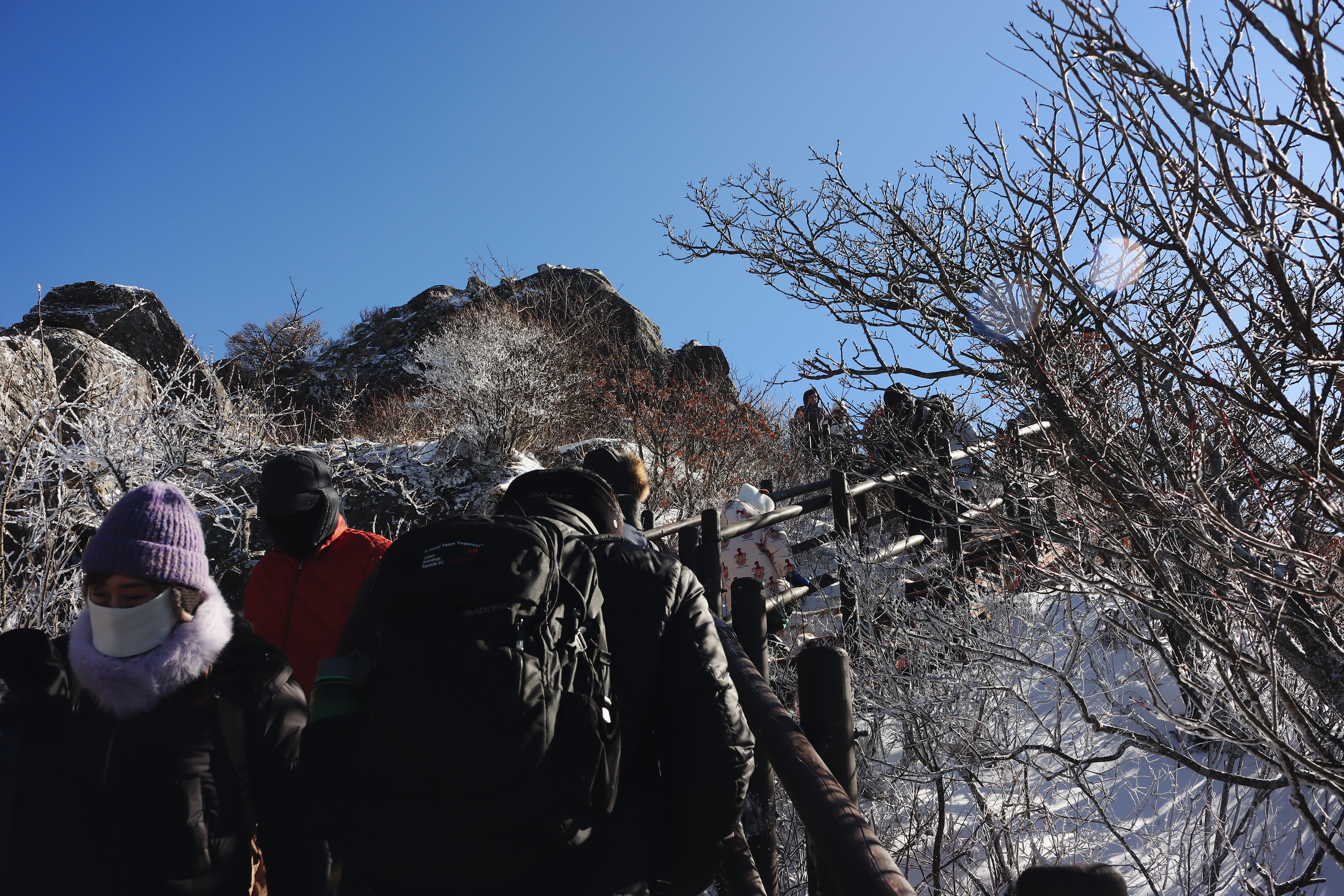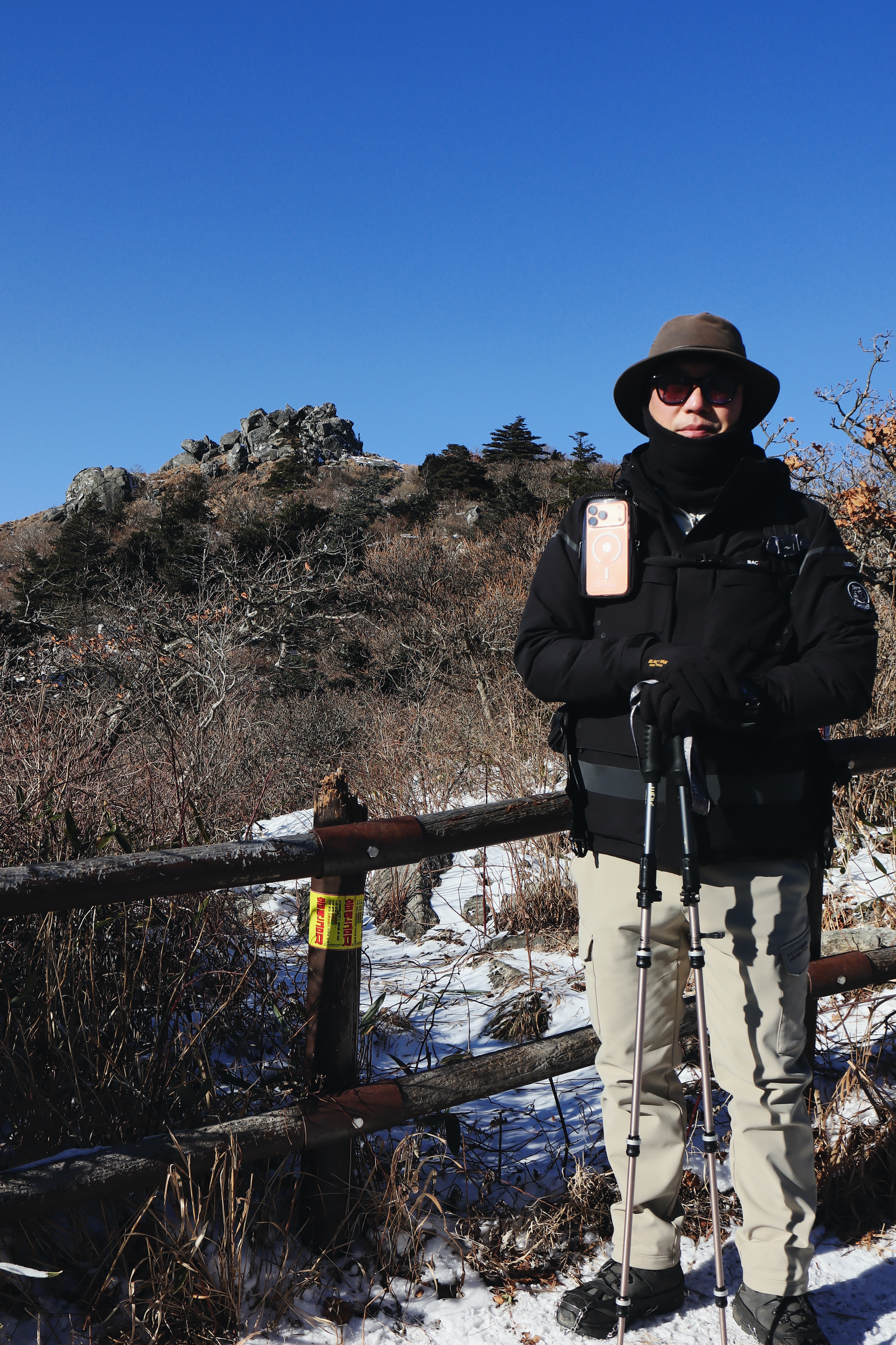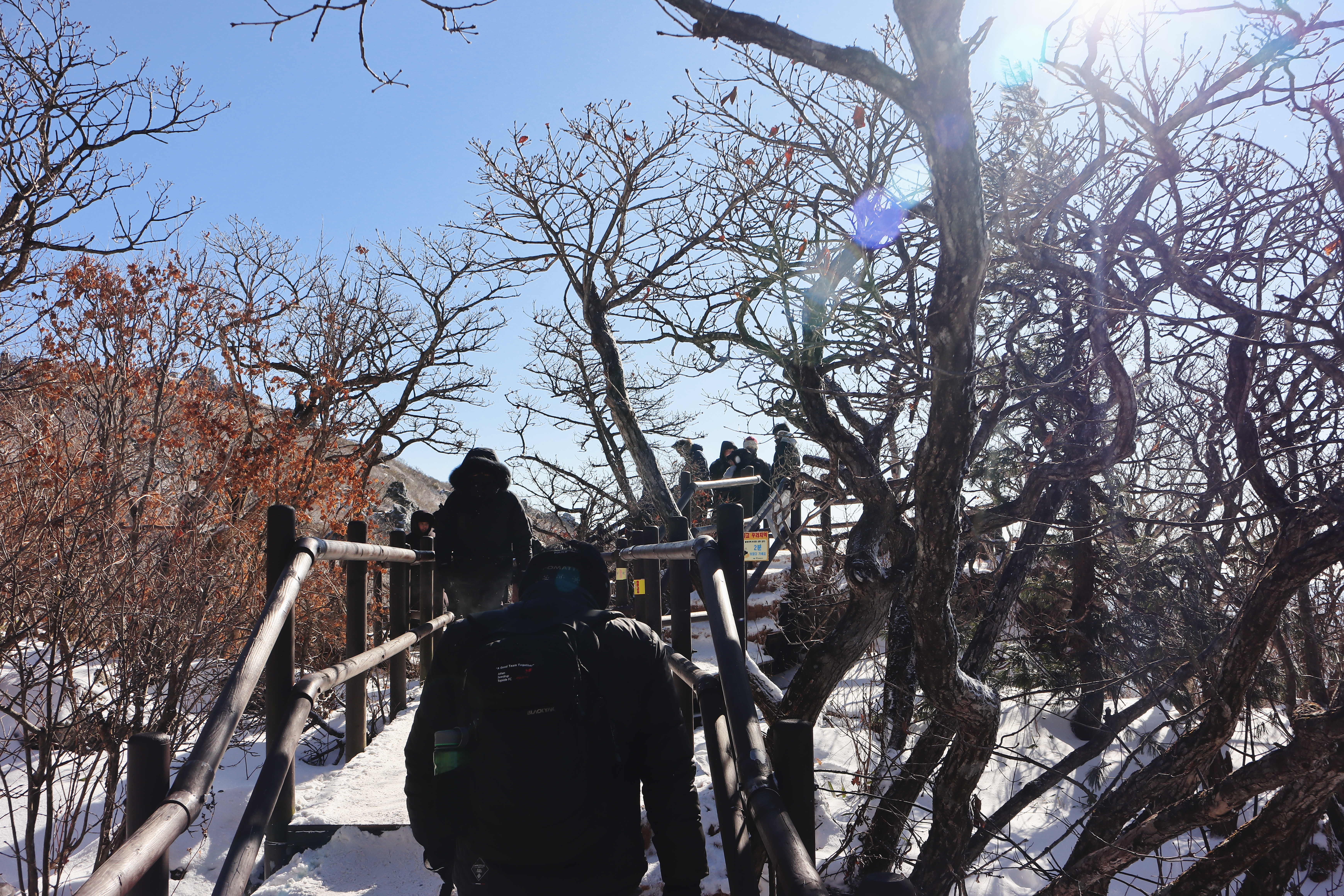 내려가는 줄이 자꾸 밀린다. 앞을 보니 사람들이 아이젠도 없이 와서 조심조심 내려가니 답답할 따름이다.
