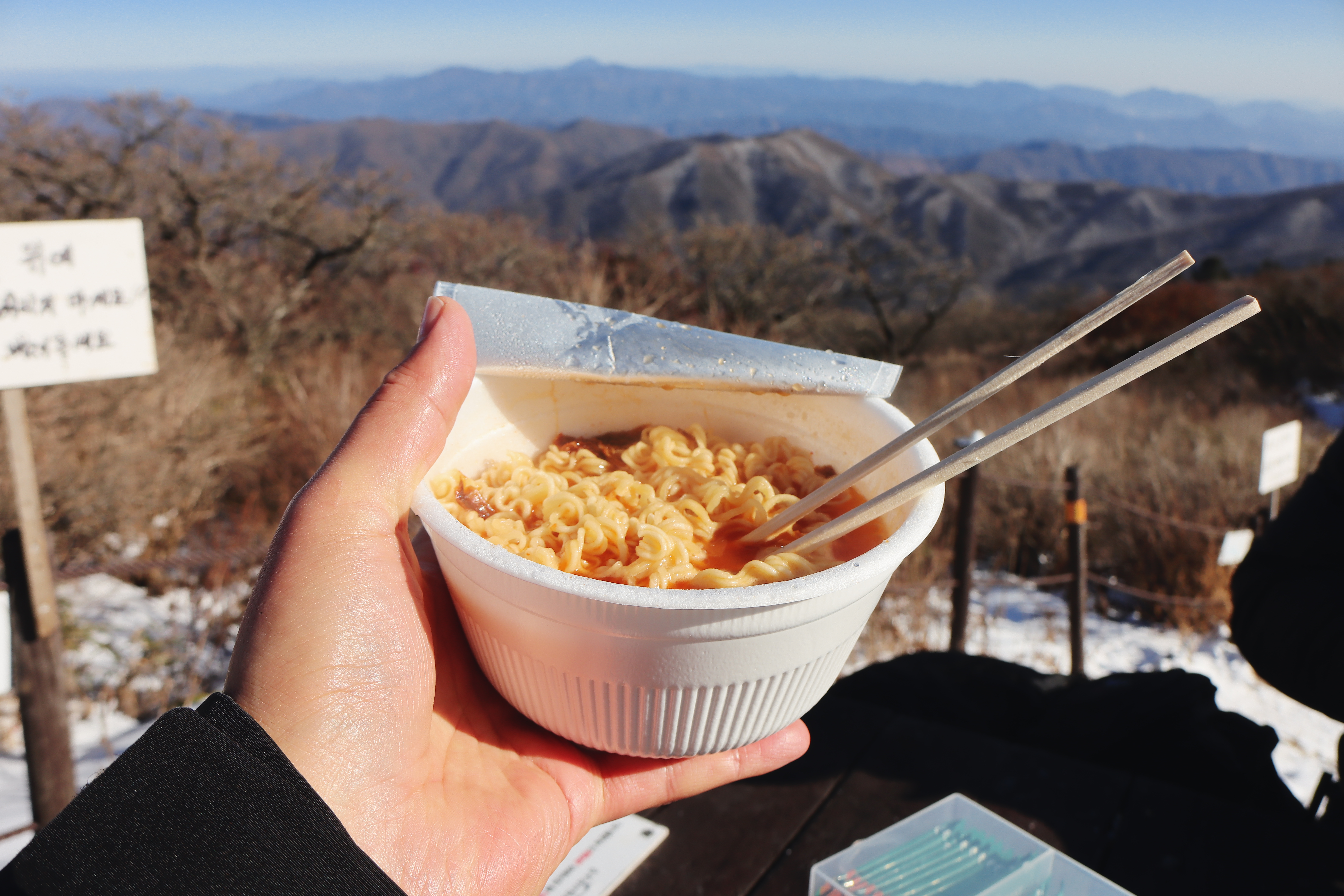 여기서 라면을 먹고 가기로 한다.