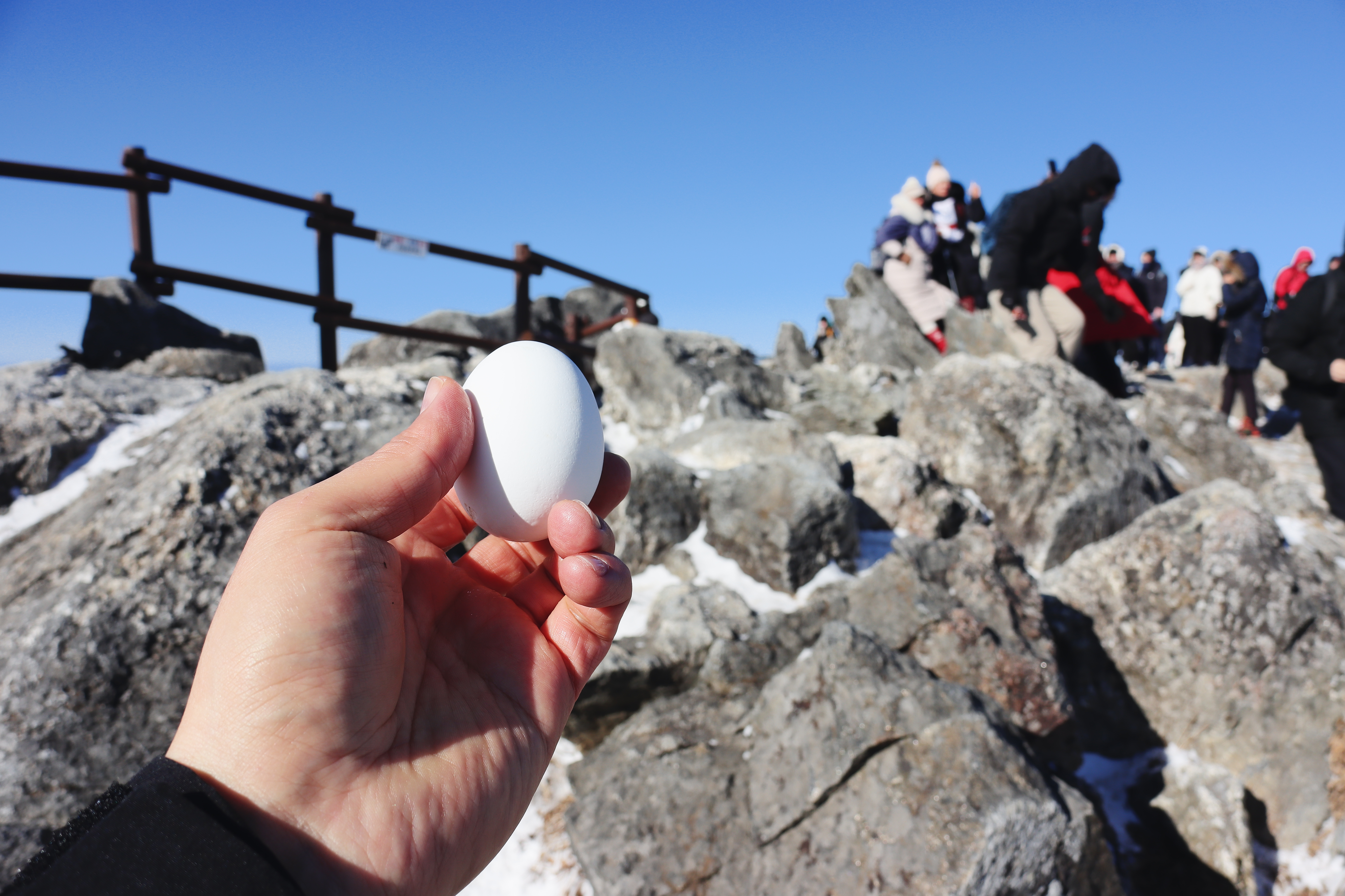 라면을 먹고 싶지만 사람들이 너무 많아 계란만 꺼내서 허기를 좀 채우고 다음 장소로 이동한다.