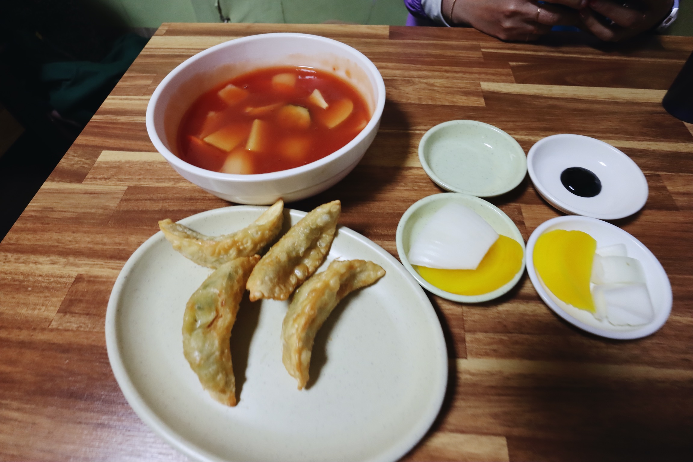단무지, 양파, 군만두, 그리고 짬뽕 국물이 기본으로 나온다.