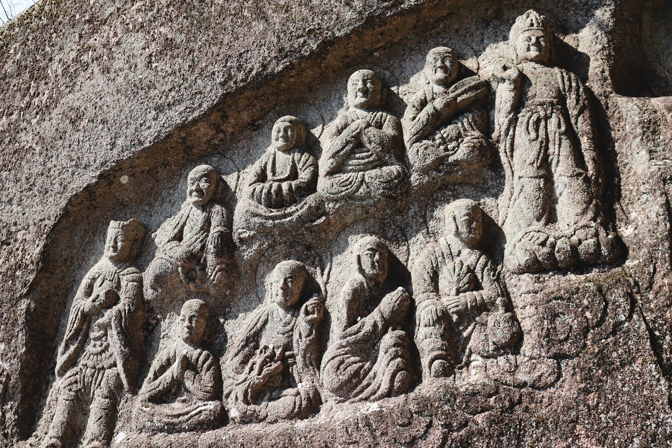 사찰을 둘러싼 자연 암석에 새긴 불상들은 불교의 신앙심에 따라 예술적으로 조각되어 있다. 석불사에 있는 29위의 돋을새김 된 마애불상은 국내 단위 사찰 중에서 가장 많은 것으로, 석불사는 국내 최고(료품)의 유일한 마애불군 사찰이다.