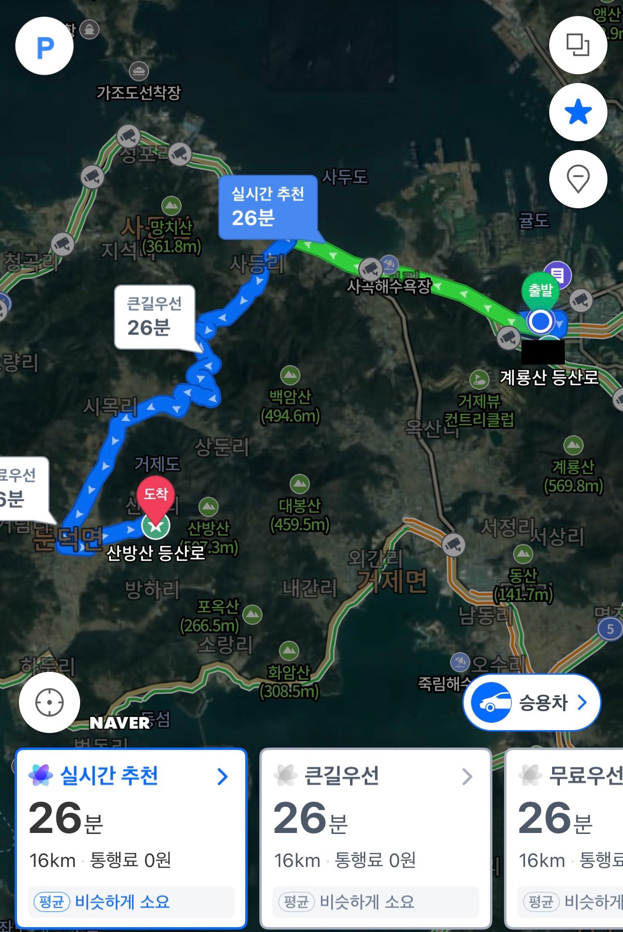 오늘의 목적지는 거제도의 서쪽에 위치한 산방산이다.