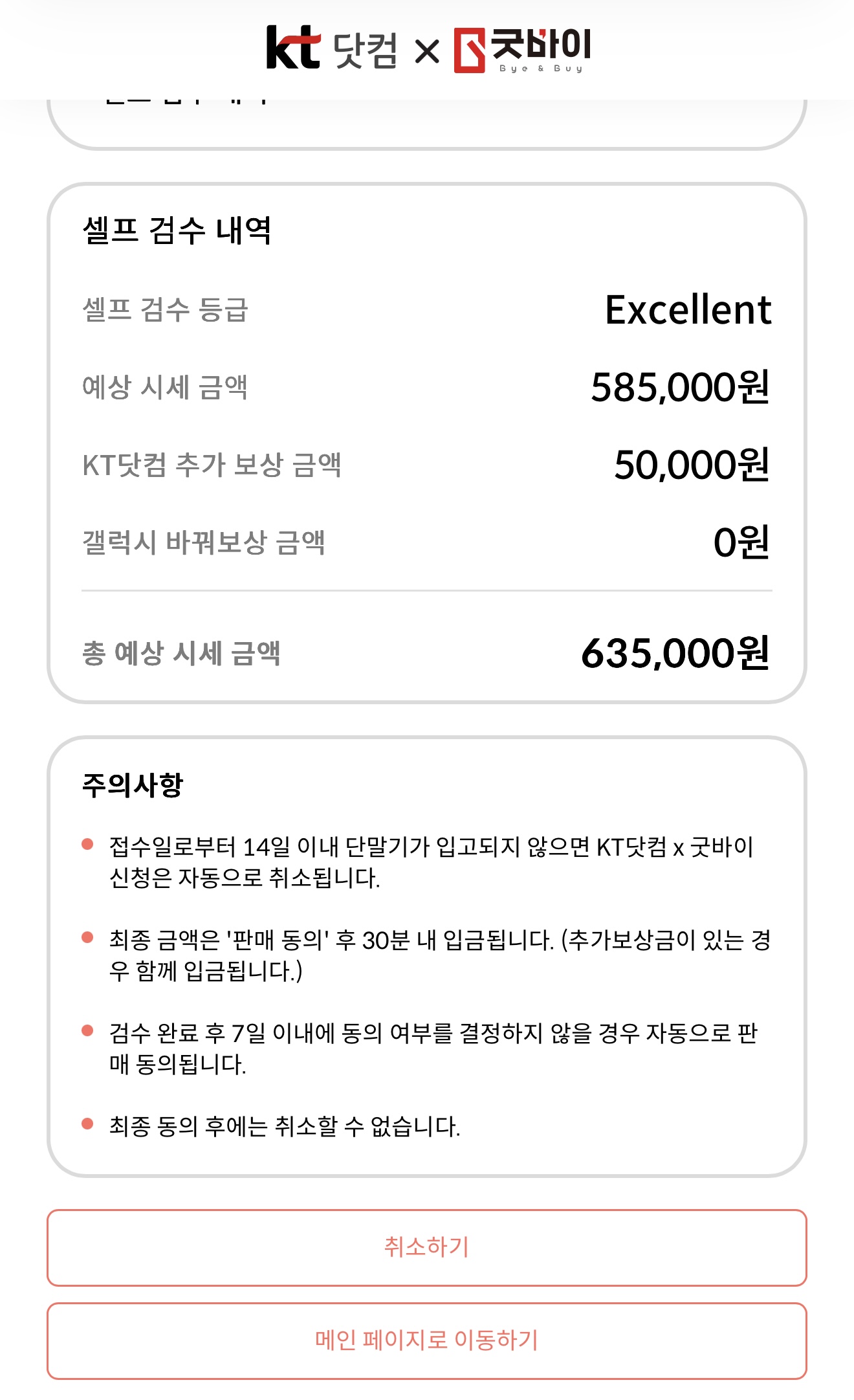 애플에서는 최고 보상이 49만 원인데 KT는 53만 원에서 최대 58만 원까지 거기다 사전예약행사로 개통 시 추가보상 10만 원도 준다는 유혹에 고민 끝에 사전예약 마감 전날에 신청을 완료했다.