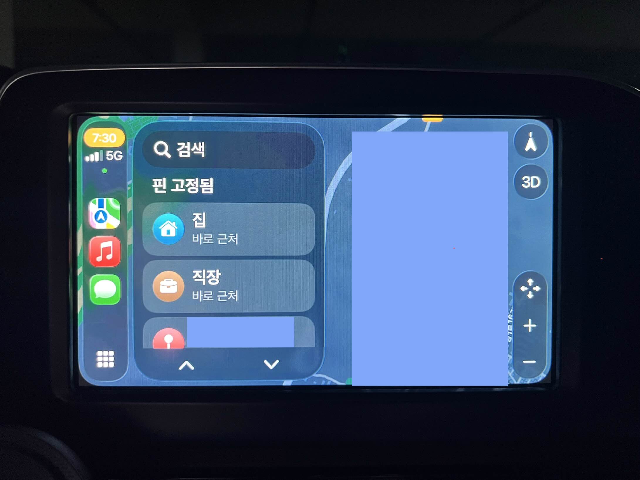다만 핸드폰 데이터로 쓰는 애플카플레이다 보니 핸드폰의 5G 상태에 따라 지하주차장 등에서 GPS가 끊어지는 문제가 좀 있고 처음 사용이라 잘 몰라서 카카오나 네이버나 T맵을 전부 눌렀더니 여기저기서 한꺼번에 네비 안내가 나와서 시끄럽다.