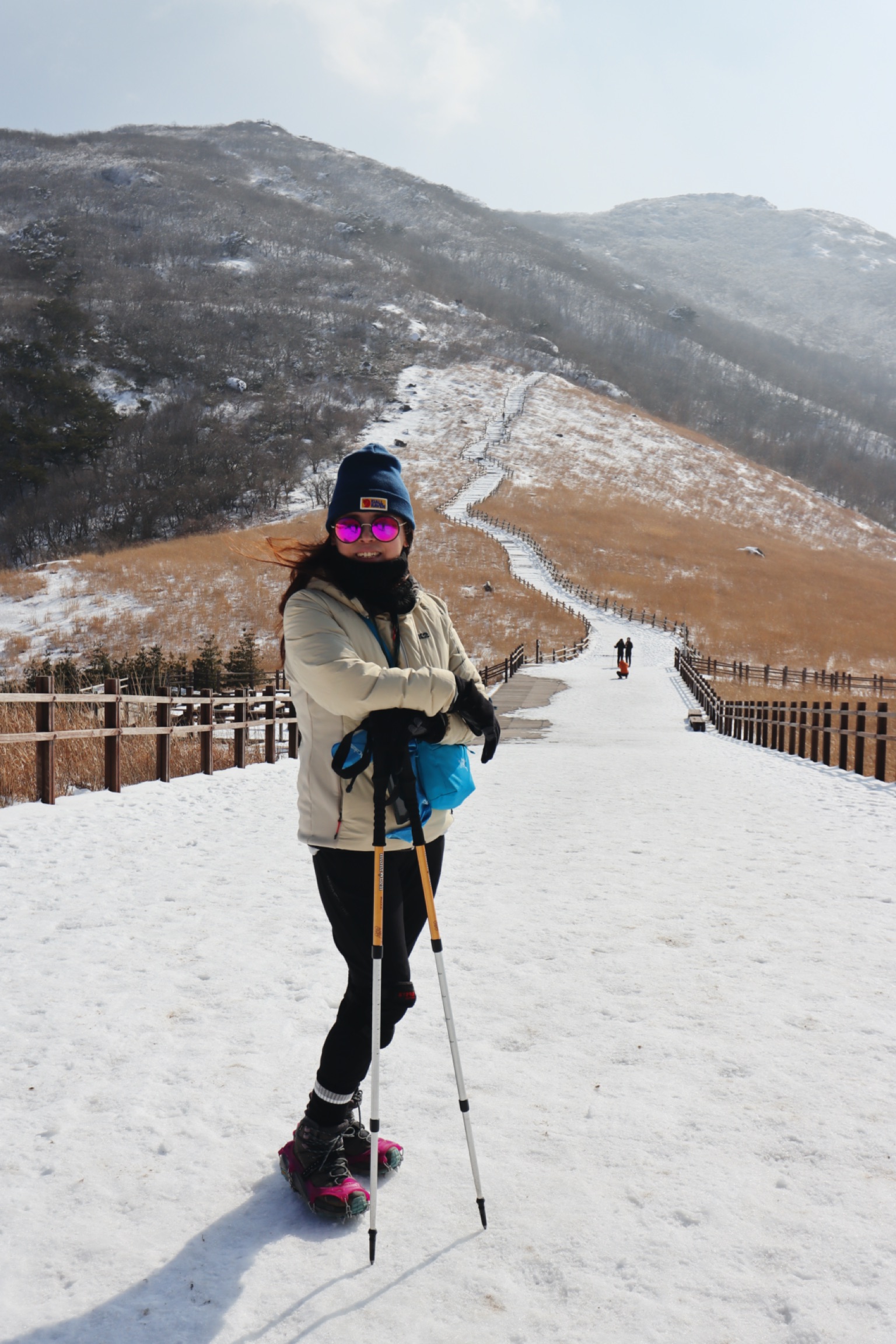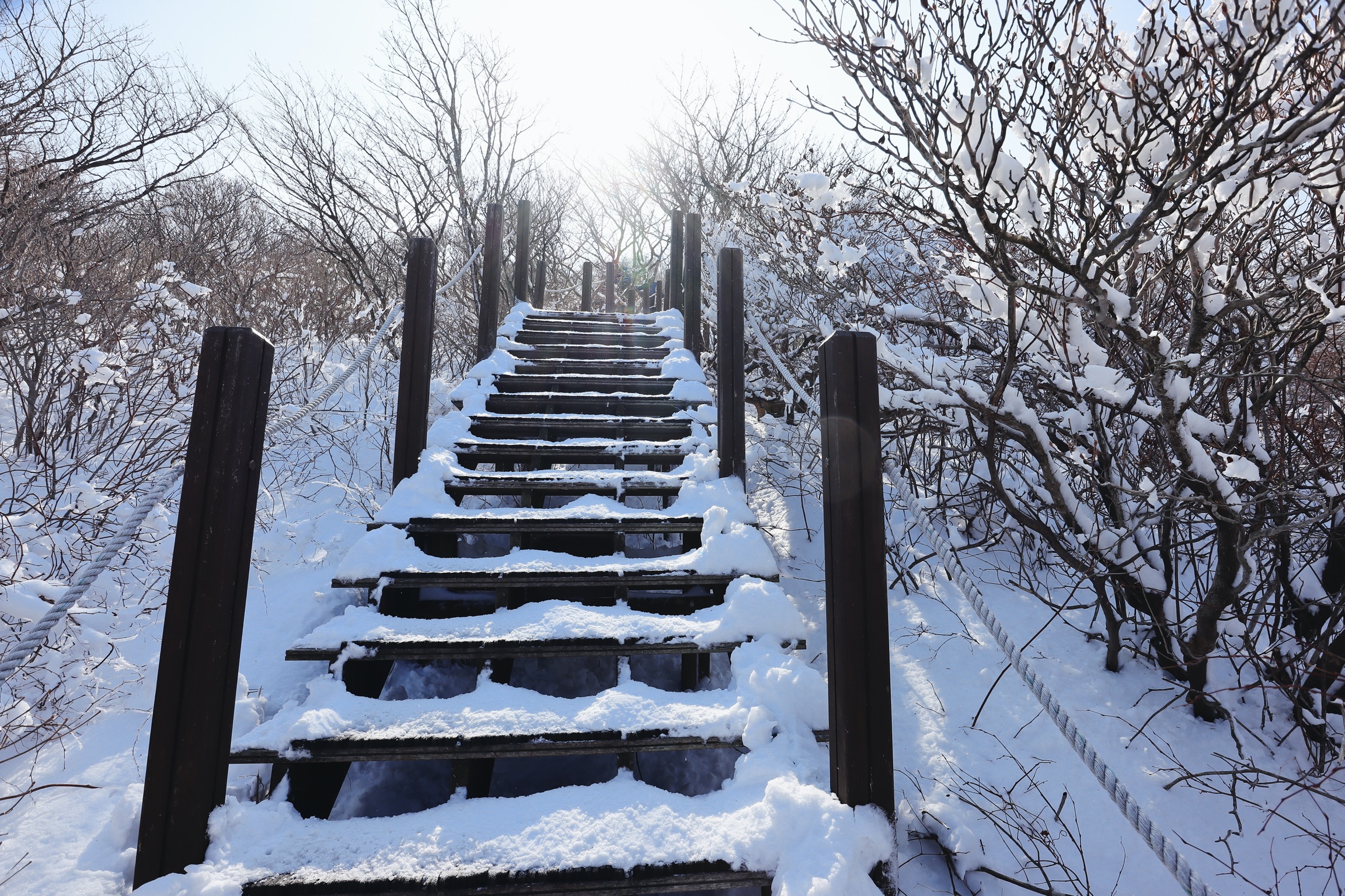 눈이 와서 계단의 층이 없다. 아이젠 필수!
