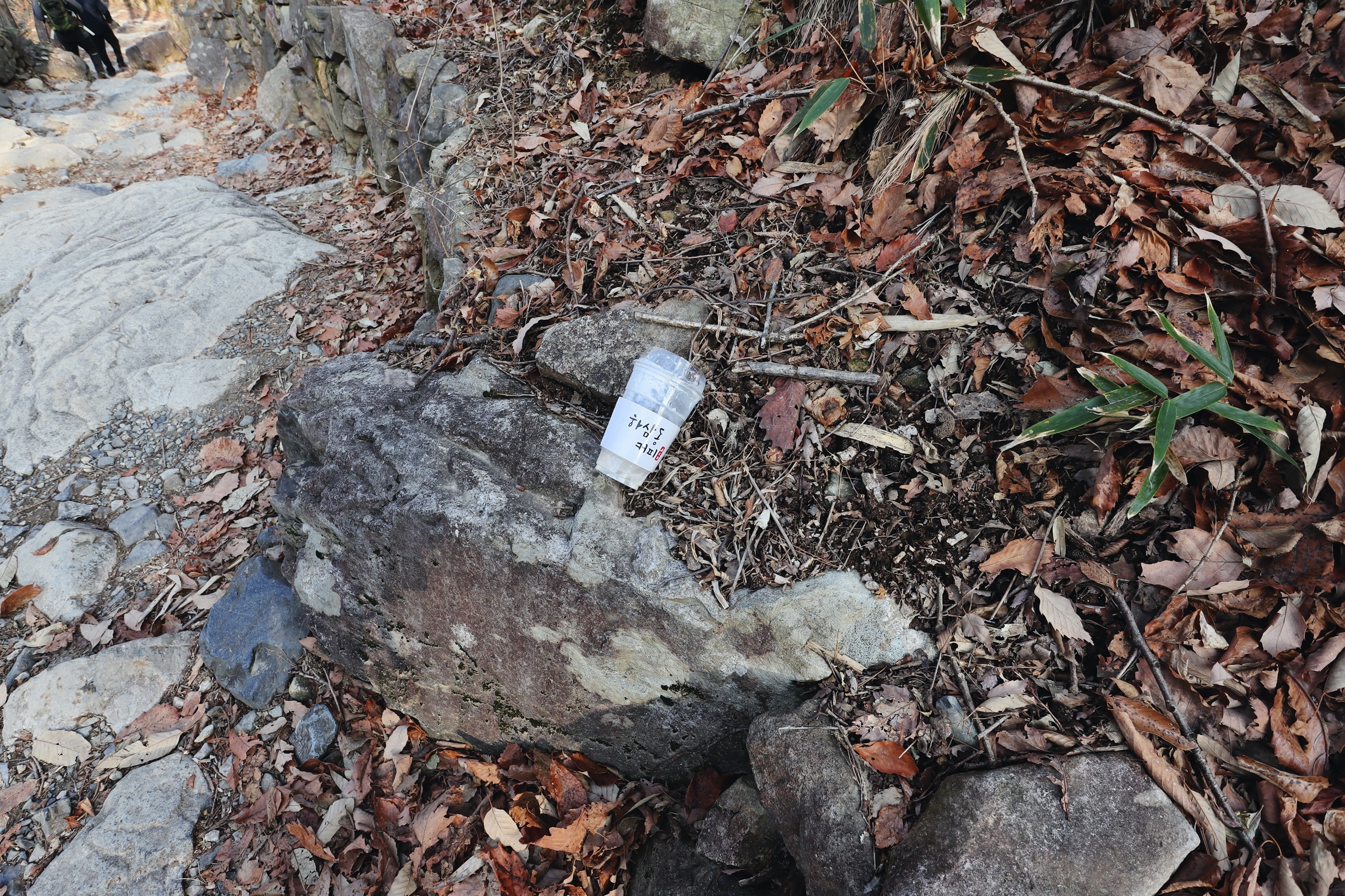 허허 참 사람들! 먹은 건 좀 가져가야지 오르면서 버리고 갔네.