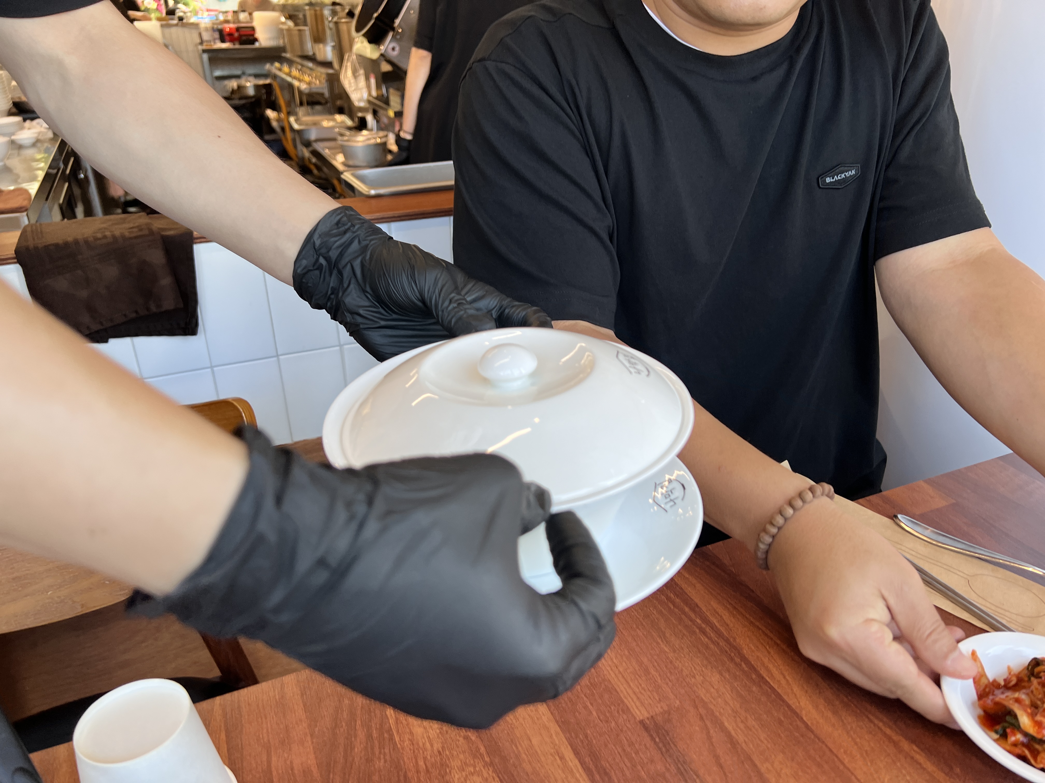 뚜껑을 덮어서 서빙해 주니 뭔가 대접받는 느낌도 나고 뚜껑을 열어 보니 완전 맑은 국물에 얇은 고기들이 위에 있어 맛있겠다는 생각이 절로 나온다.