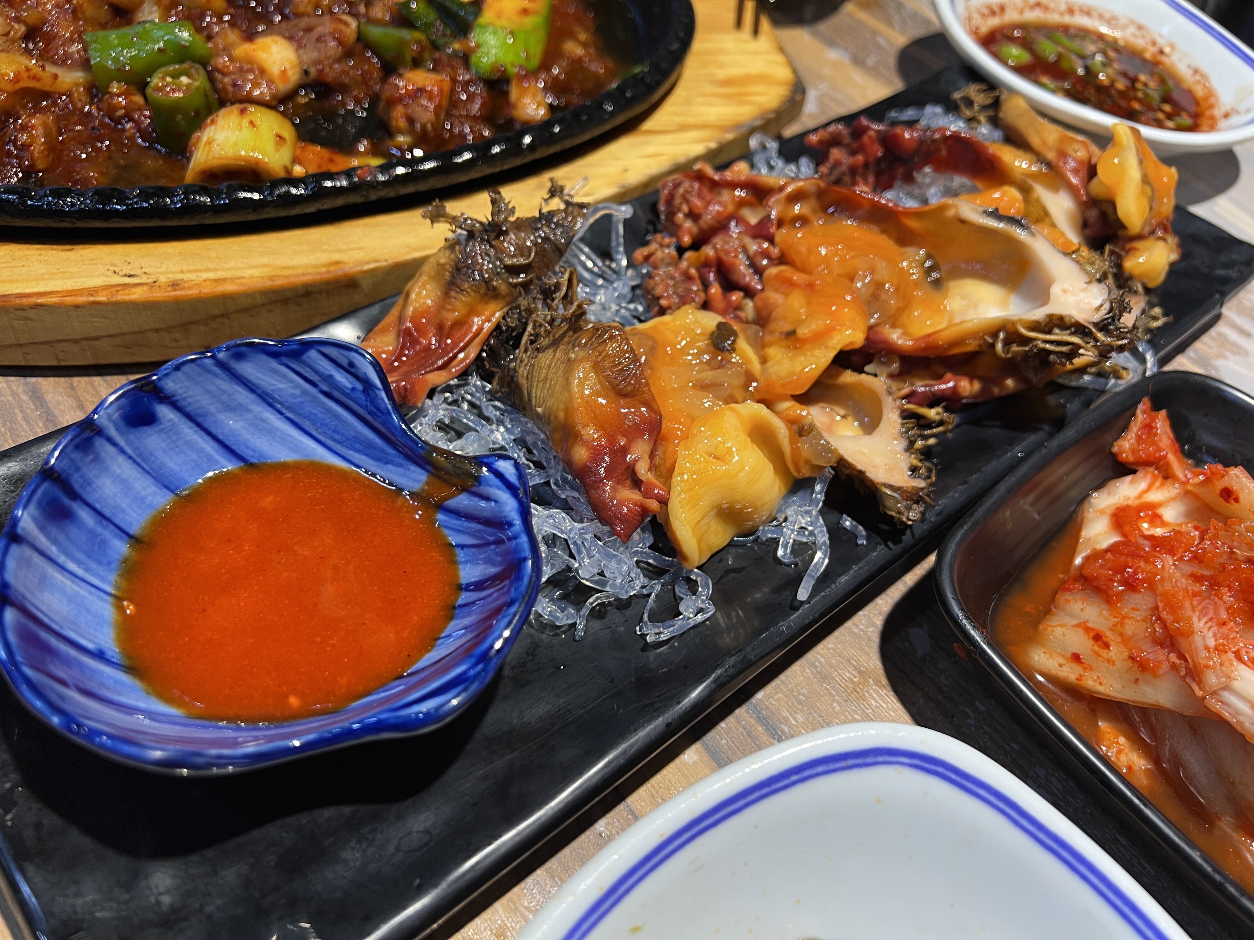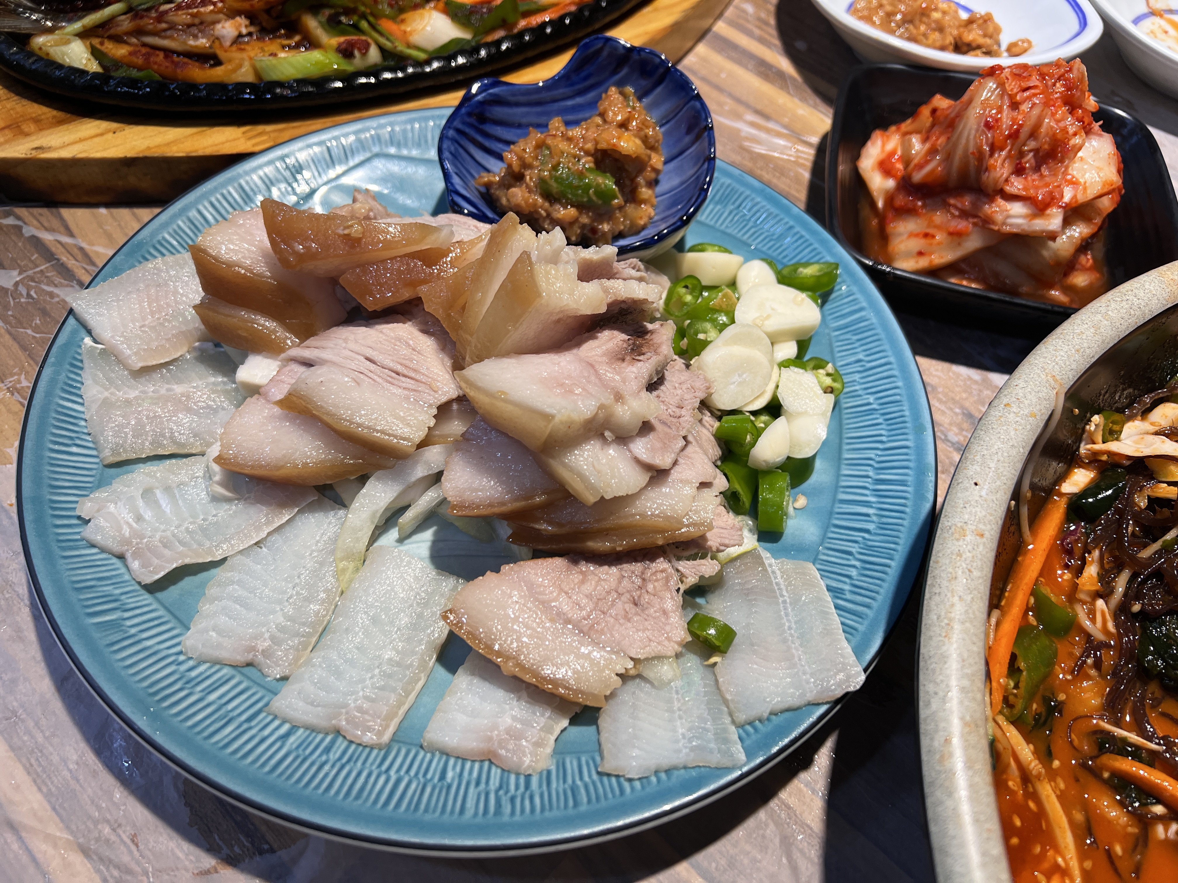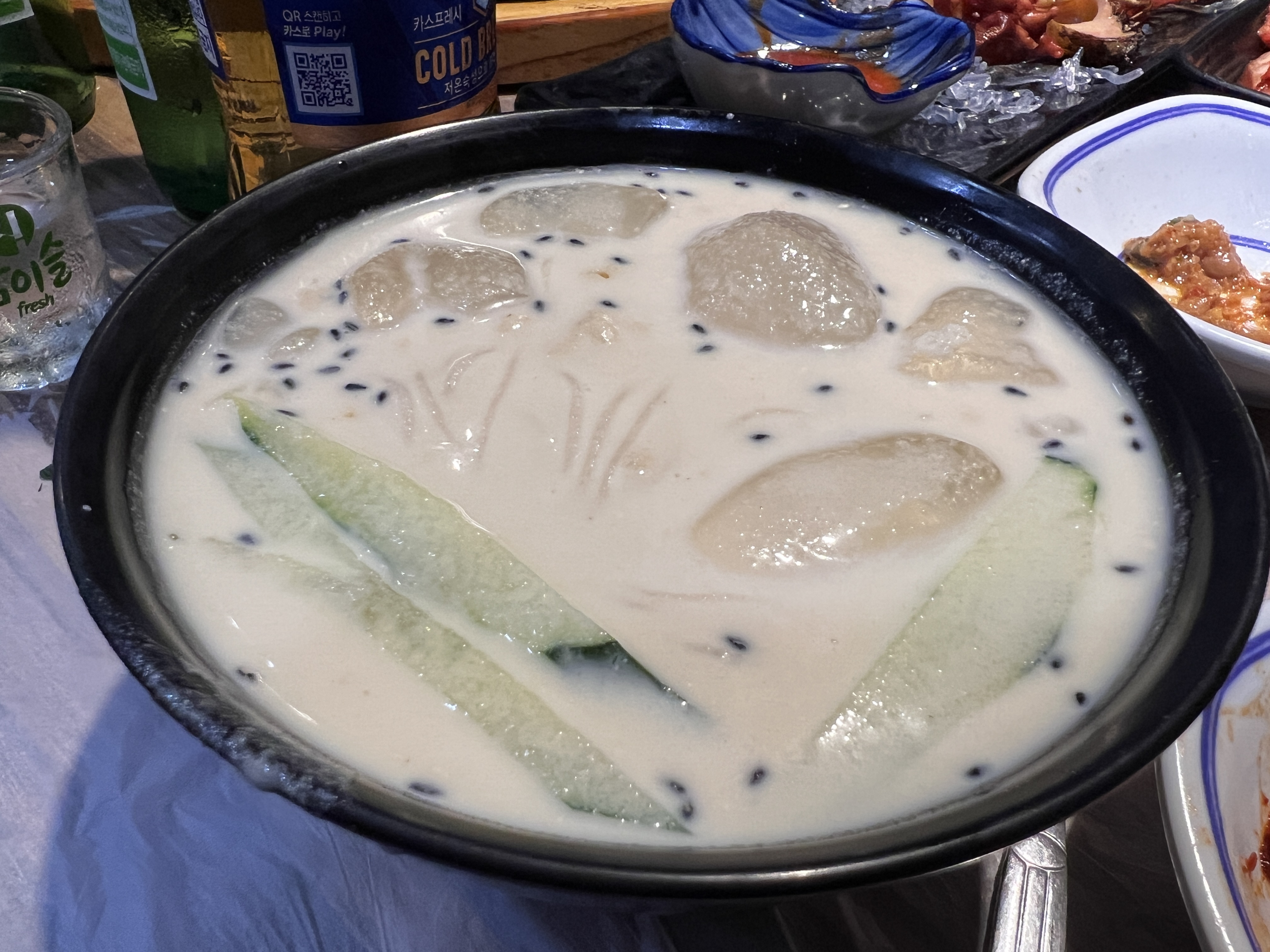 시작은 제철 맞은 꼬막과 전으로 시작해서 병어무침, 고갈비, 홍어삼합, 제육볶음, 멍게에 디저트로 콩국과 화채.