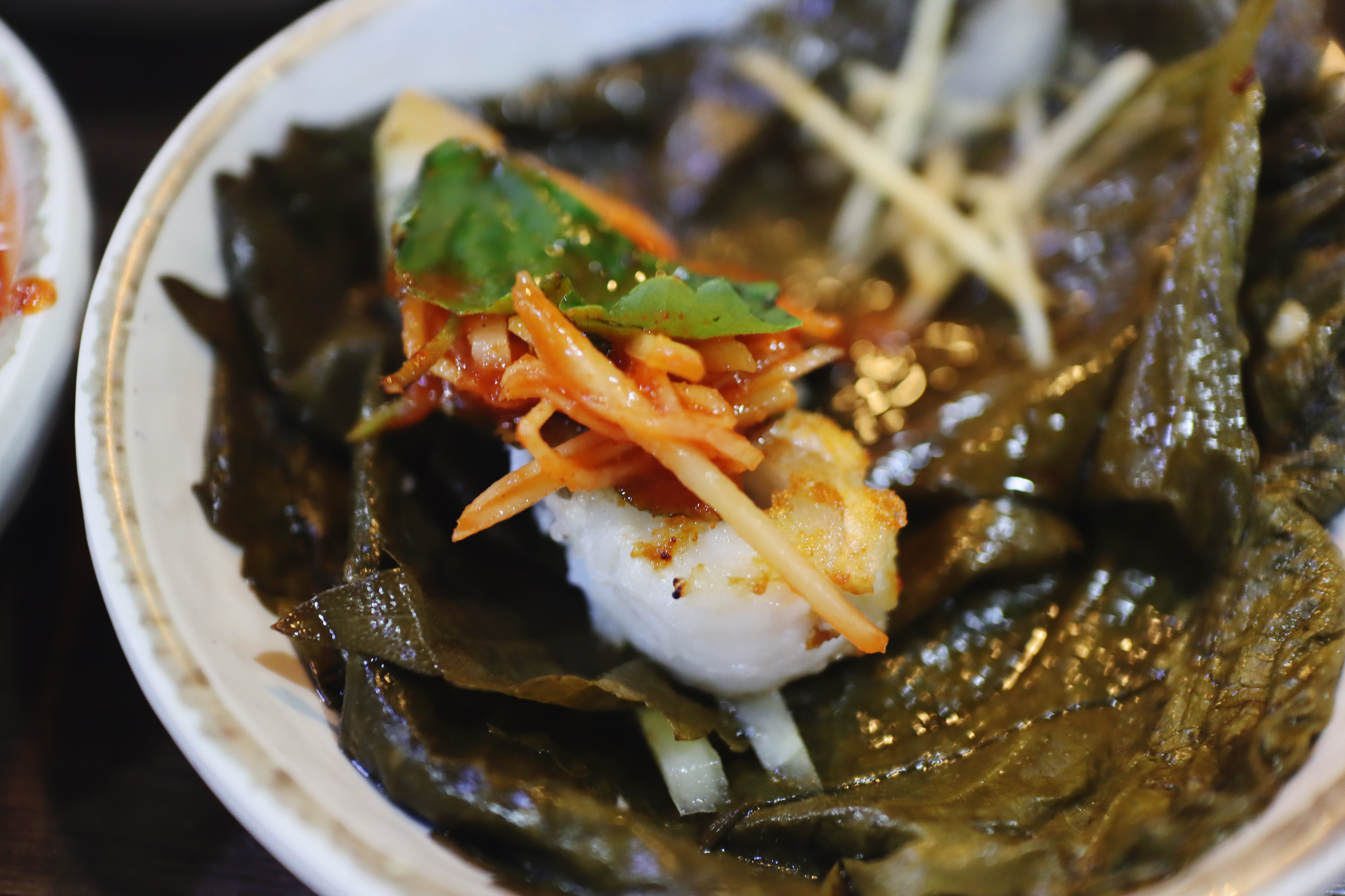 두번째에는 깻잎장아찌에 싸서 먹고