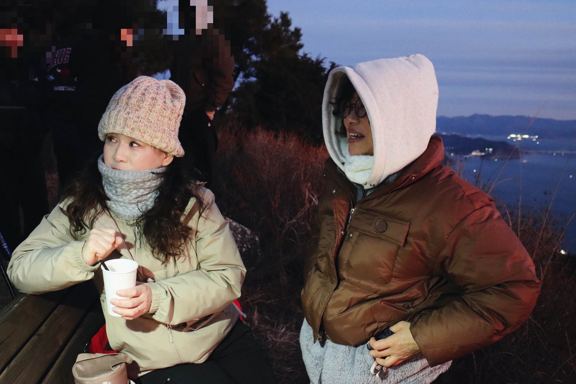 해를 보며 커피 한잔 하는 동안 다른 사람들은 이미 하산을 하고 있다.