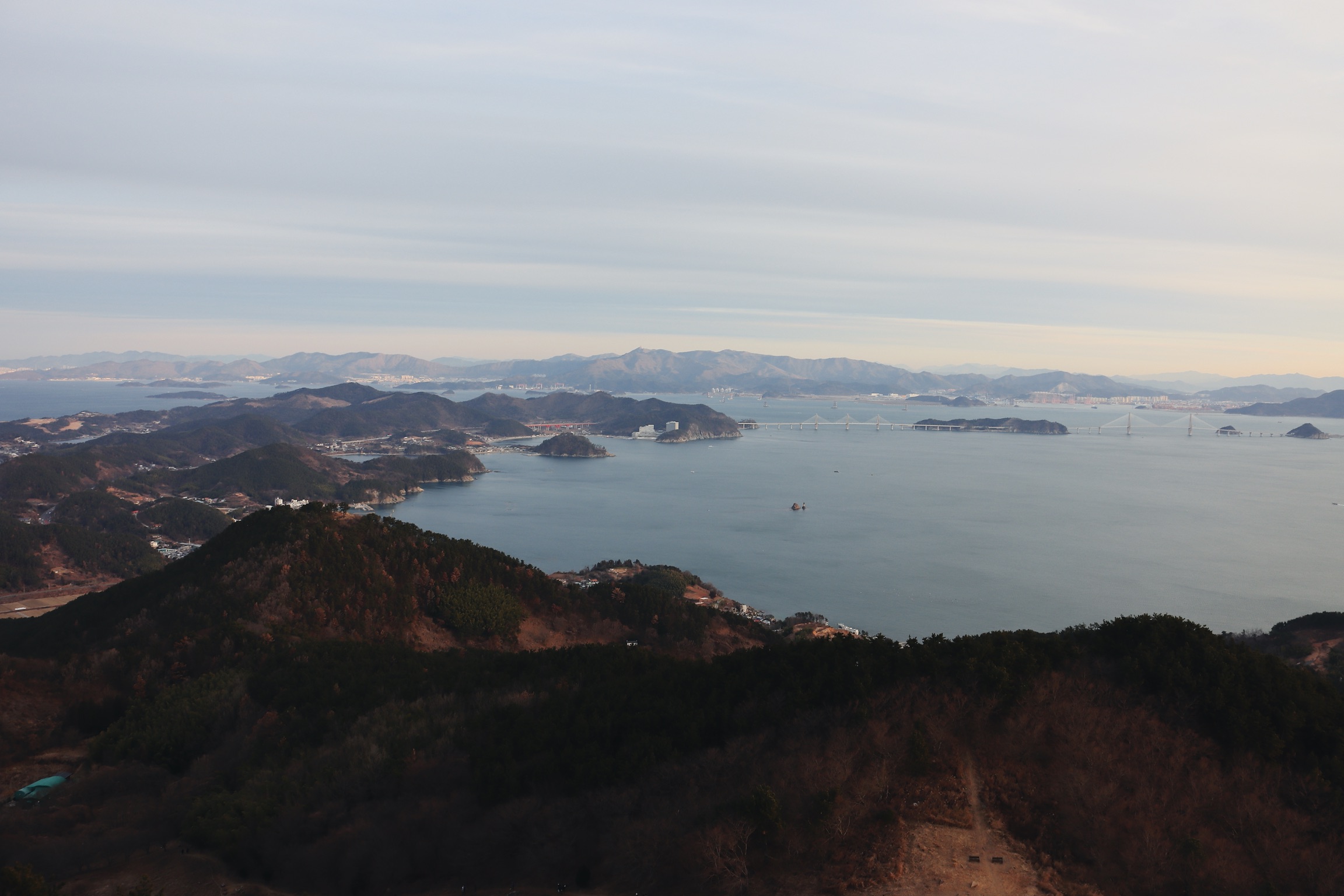 날이 밝아오며 거가대교가 보인다.
