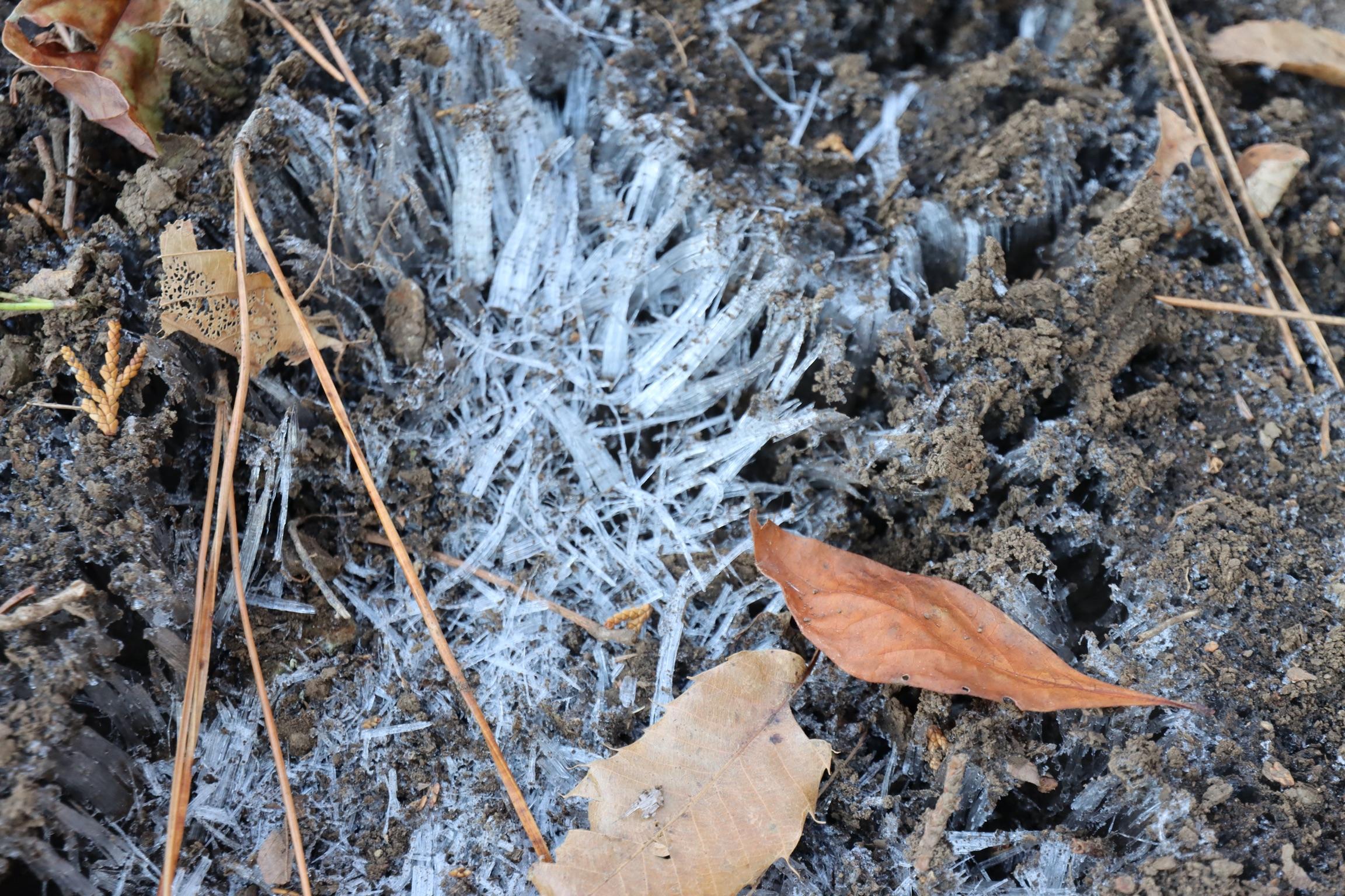 응달쪽은 밤새 얼음이 얼었는지 얼음 모양이 신기하게 펴있다.