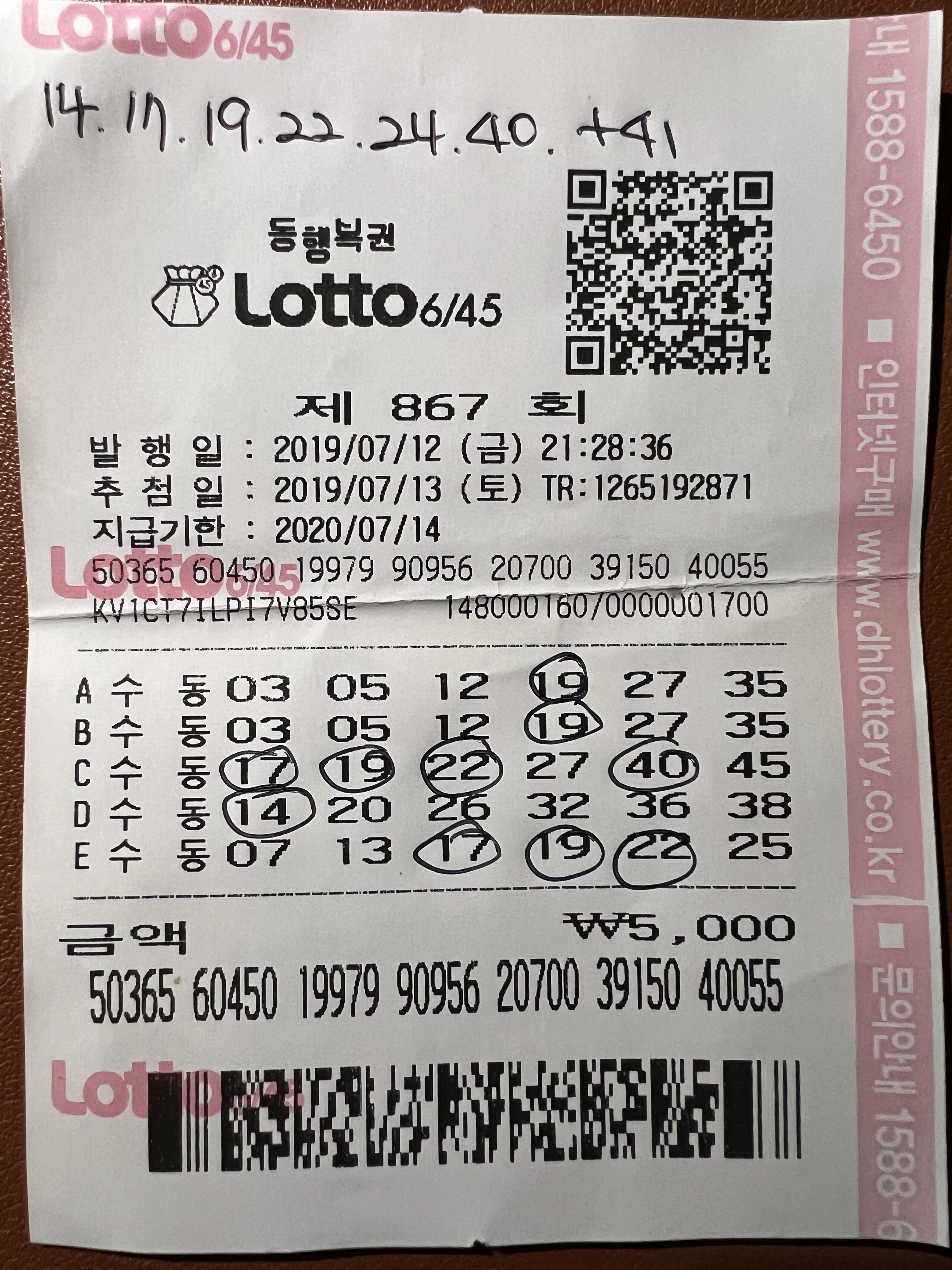 조회하니 4등 당첨. 허허참!