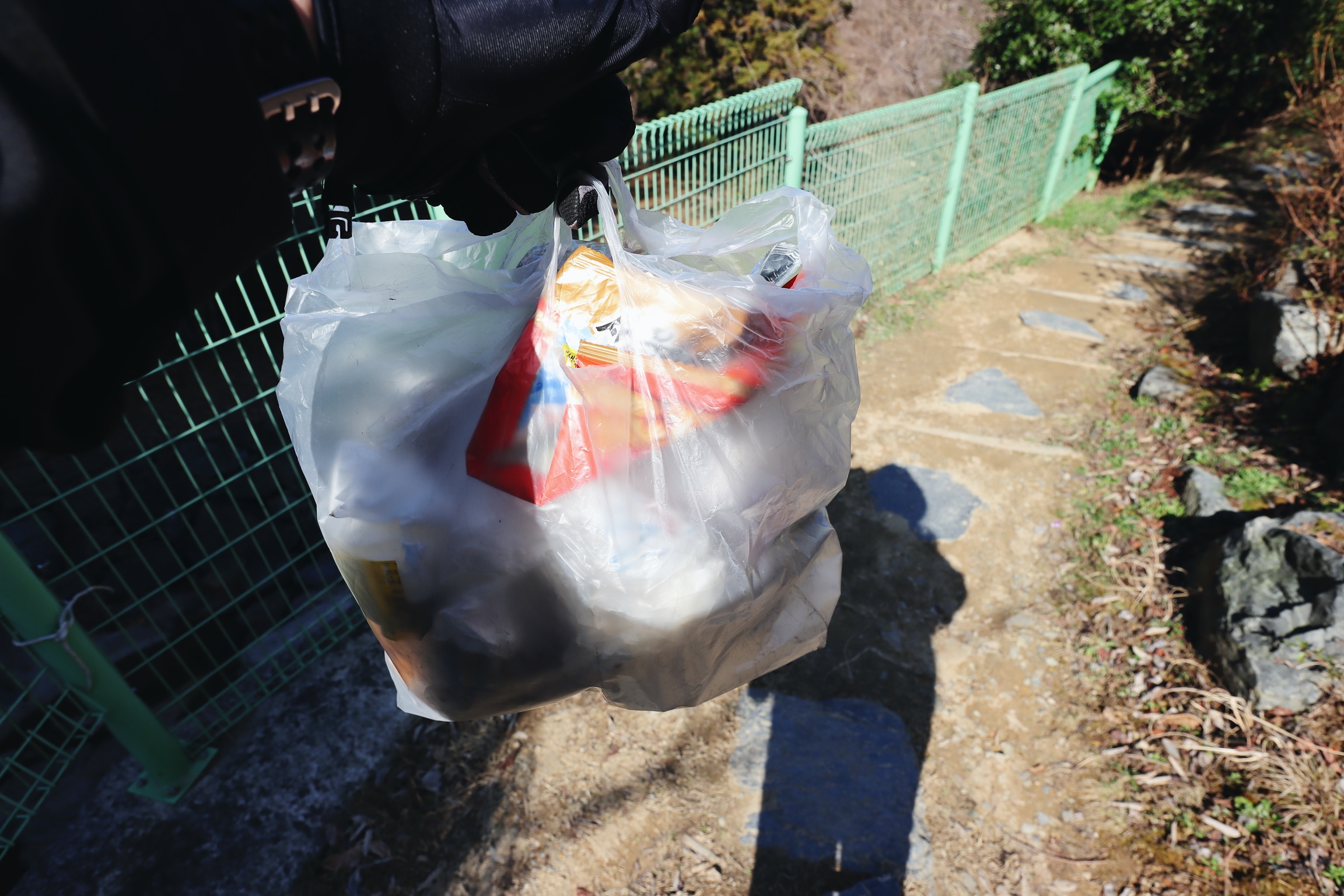 다 내려와서 발견한 또 누군가가 버리고 간 쓰레기.