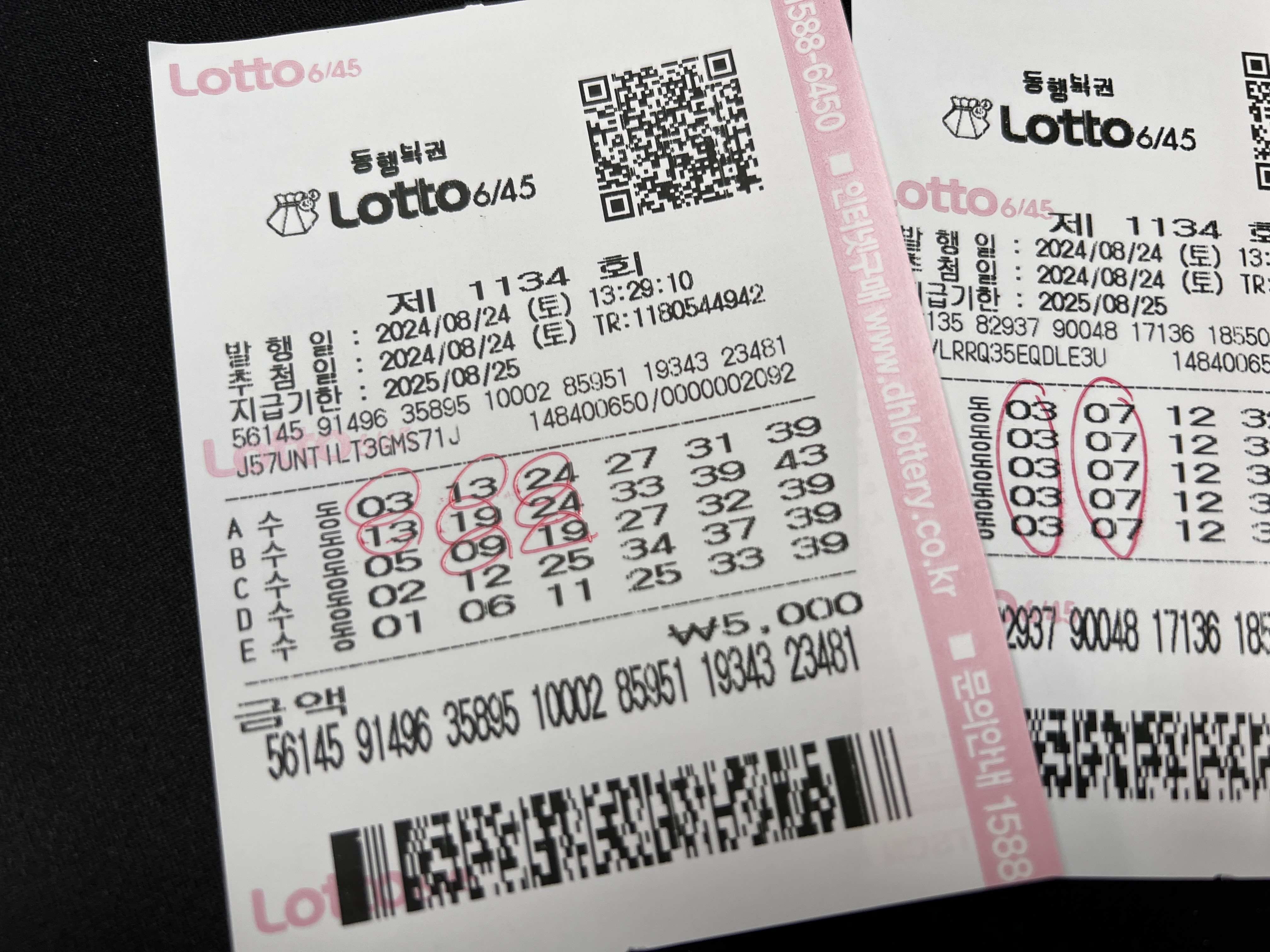 대박이잖아!! 번호를 다 맞추다니!!