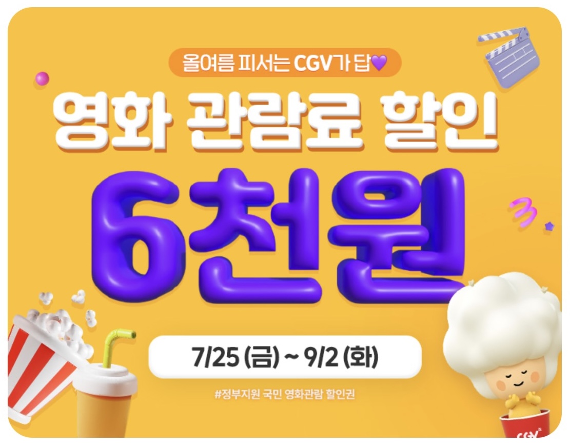 주말에 영화나 볼까 해서 CGV에 들어갔더니 정부 지원금과 함께 할인행사가 진행 중이다.