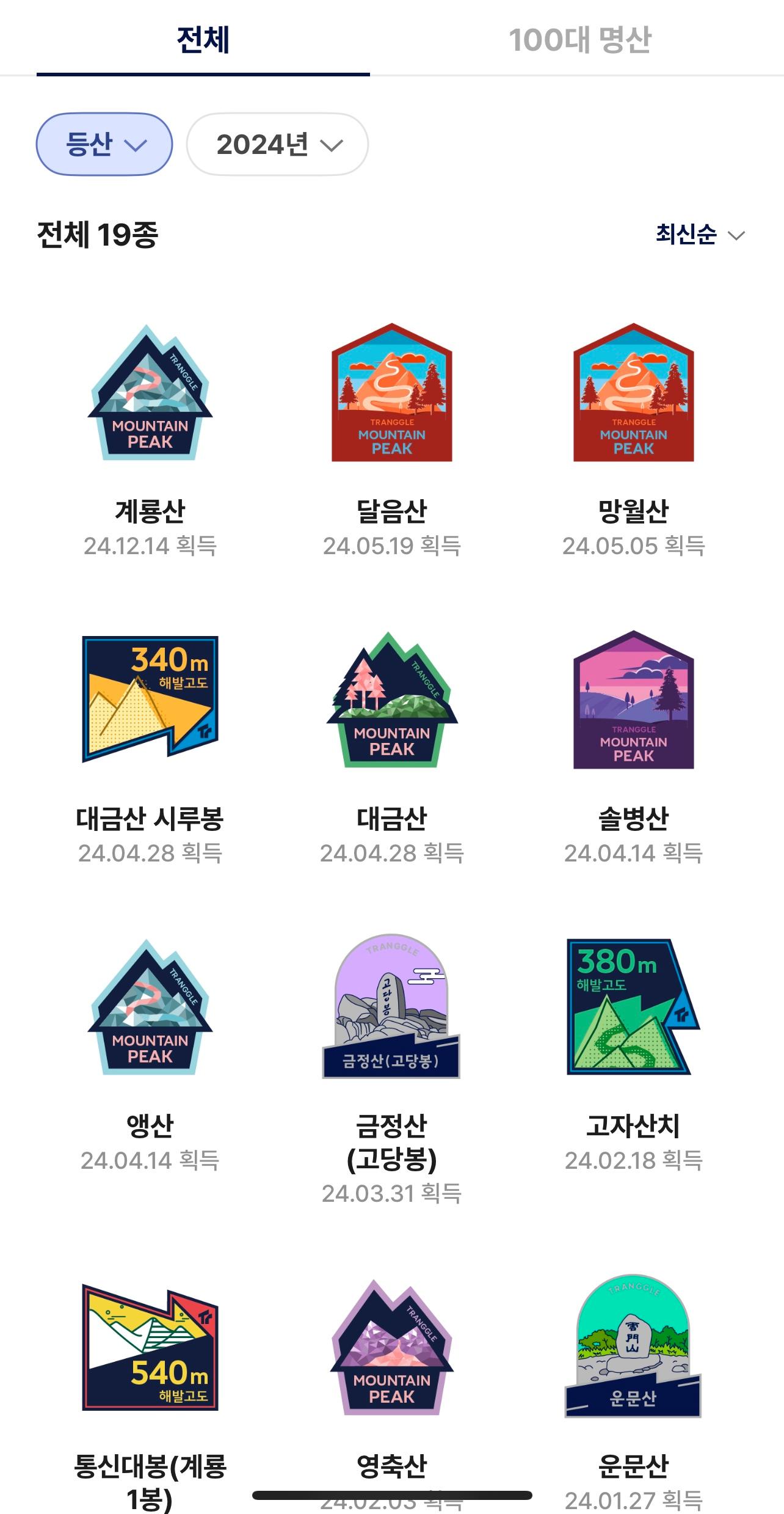 올해 합계를 보니 총 62회, 19개의 산을 올랐다.